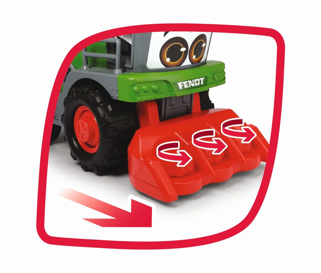 Kombajn s očíčky pro nejmenší, na volnoběh, rotující radlice, chrastící kuličky, madlo. Délka 30 cm.