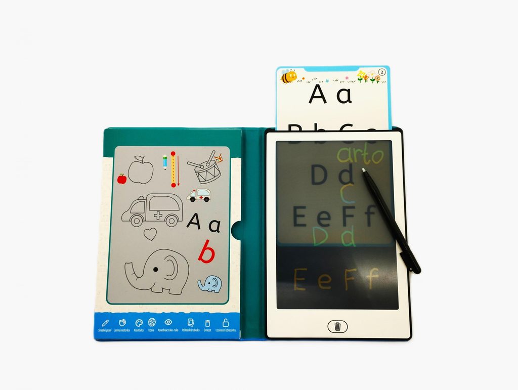 ARTO LCD Kreslicí tabulka se šablonami je průhledná LCD tabulka, která dětem umožňuje kreslit, psát vzkazy nebo hrát hry bez nutnosti použití papíru. Součástí balení bývají i šablony, které se vkládají pod průhlednou plochu a pomáhají dětem s nácvikem psaní, uvolňováním ruky, postupným kreslením zvířátek nebo si s nimi mohou zahrát piškvorky, lodě či hádání slov.