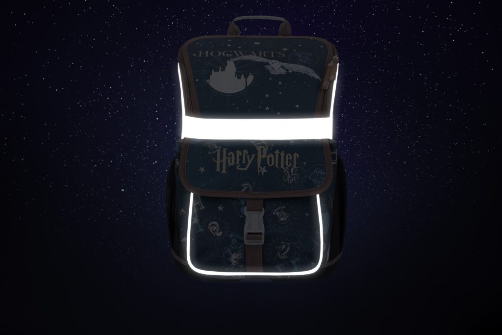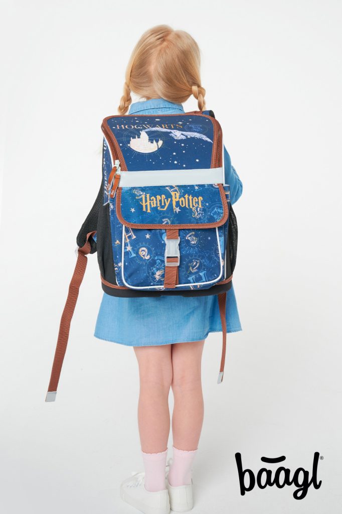 Školní set pro fanoušky Harry Potter, který obsahuje batoh, pytlík na obuv a penál.