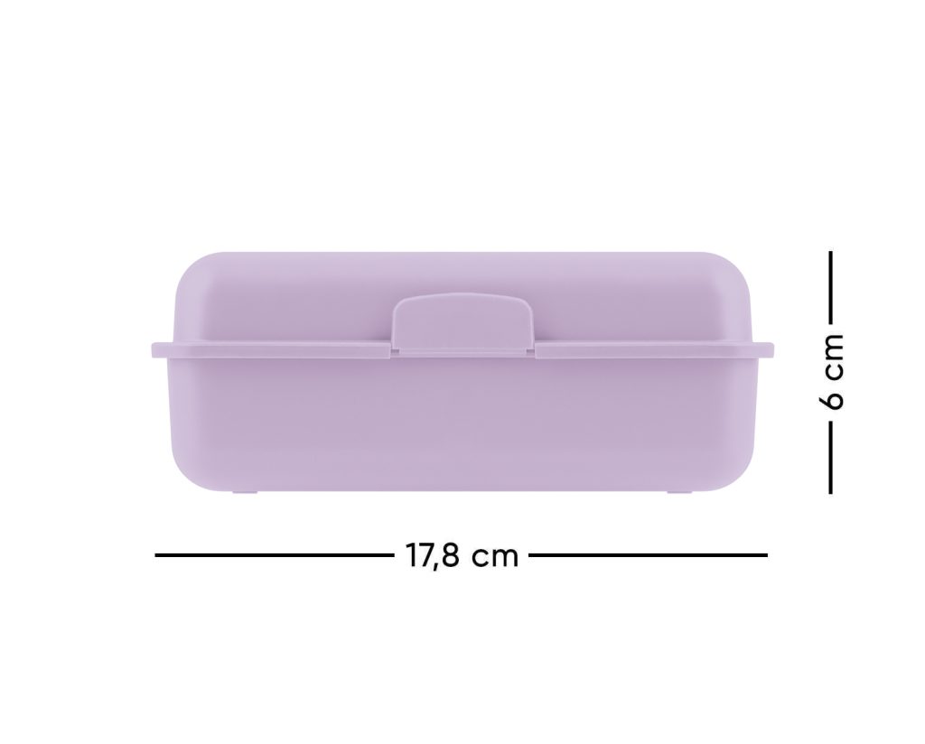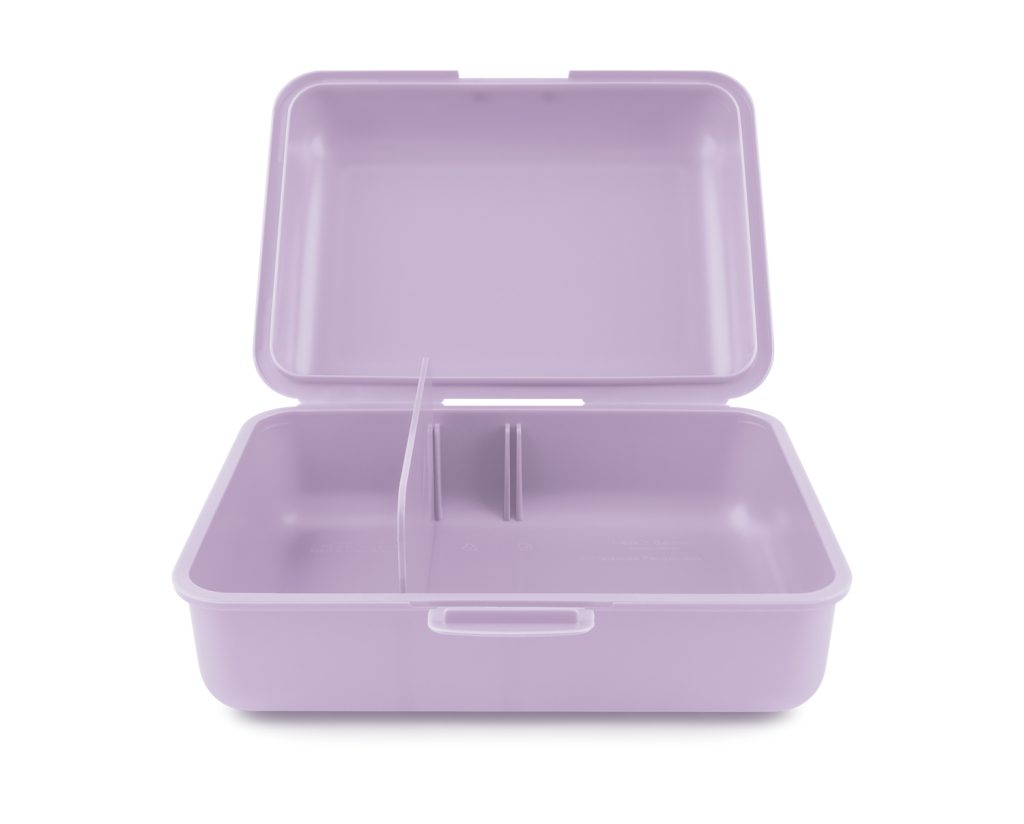 • Plastový box na svačinu ve fialové barvě.