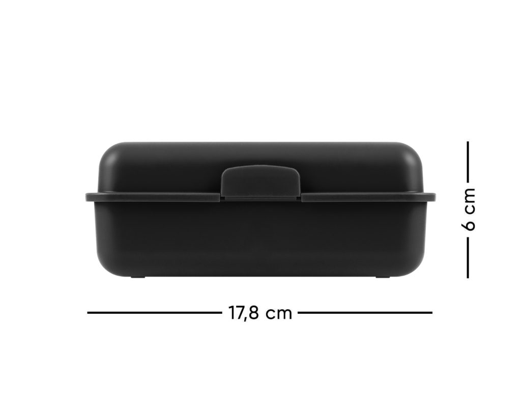 • Plastový box na svačinu v černé barvě.