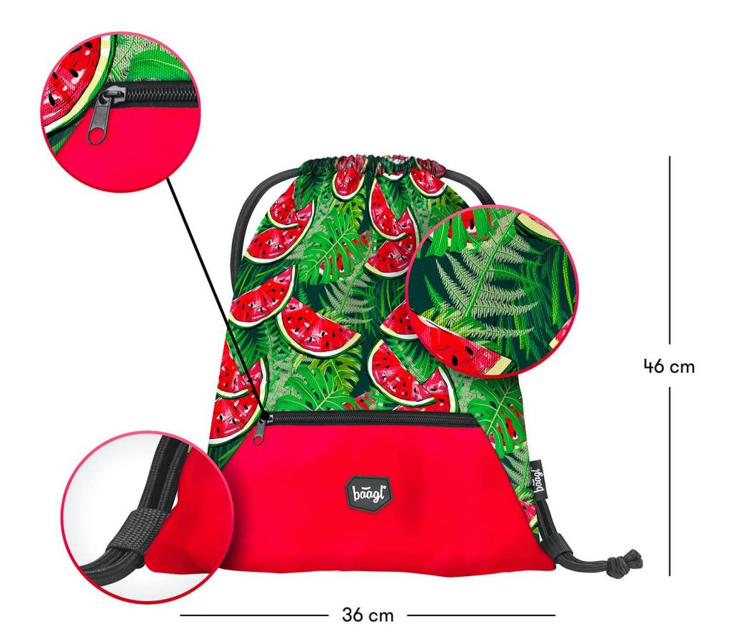 Sáček na přezůvky či jakékoliv volnočasové aktivity s motivem Meloun, v dolní části praktická kapsička na zip.