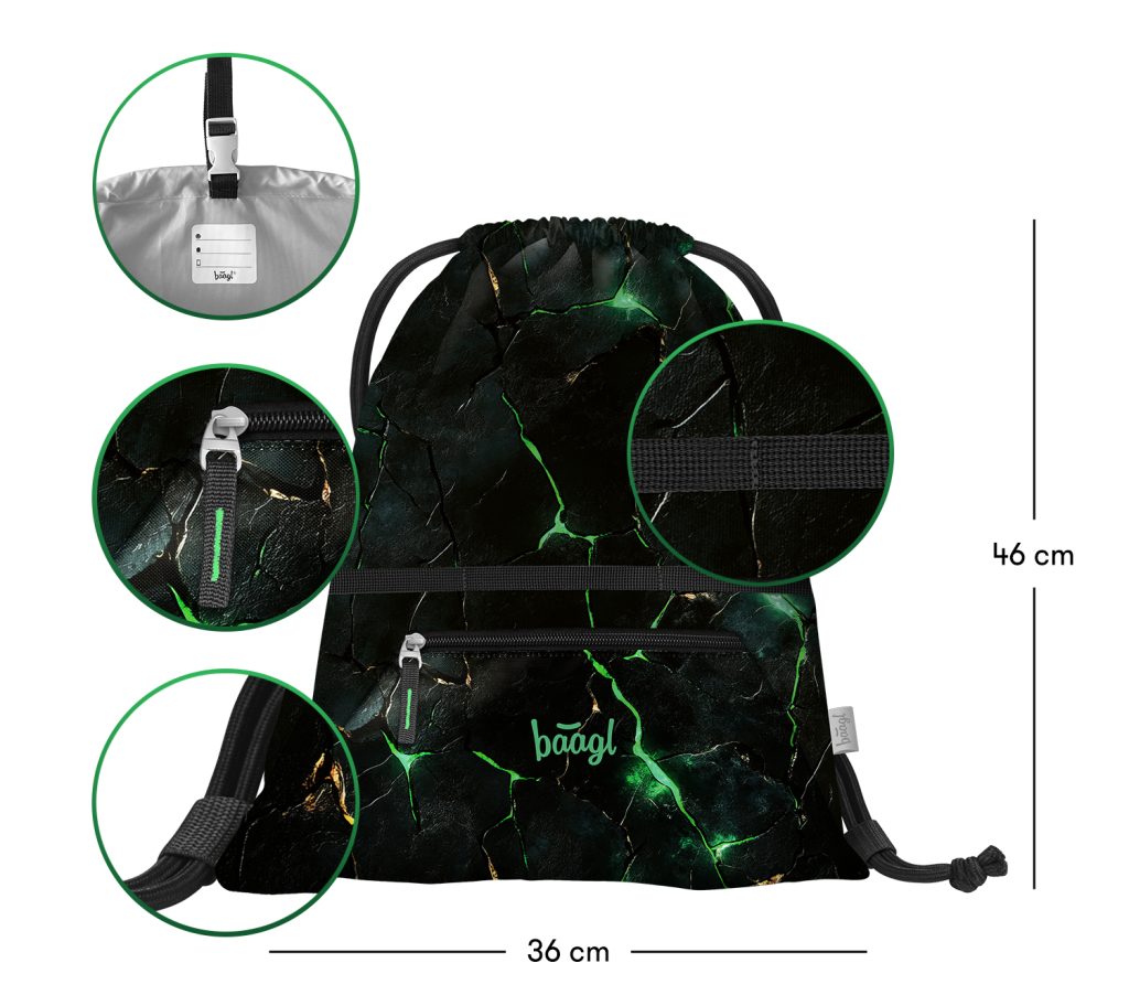 • Praktický sáček s kapsou na zip je vhodný nejen na přezůvky do školy, ale také na cesty, do města, na sportovní či jiné volnočasové aktivity.
