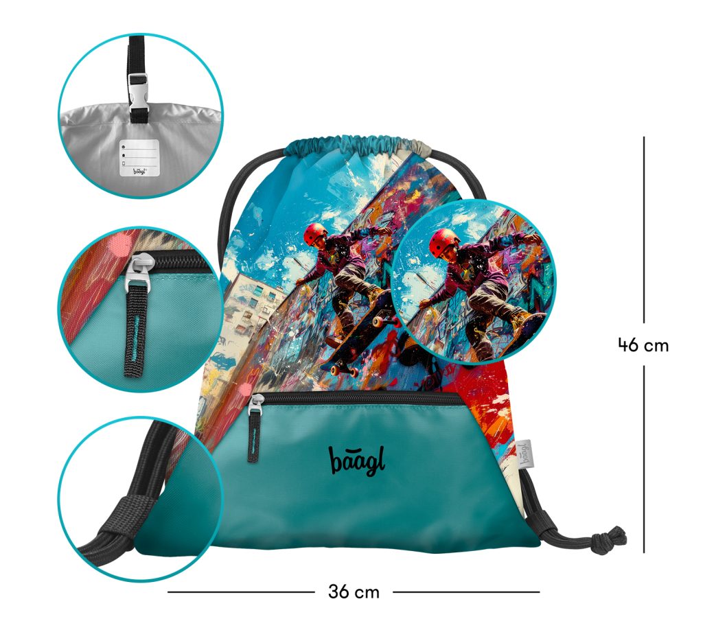 • Díky praktickému poutku na přezku lze sáček snadno připevnit k batohu či aktovce.