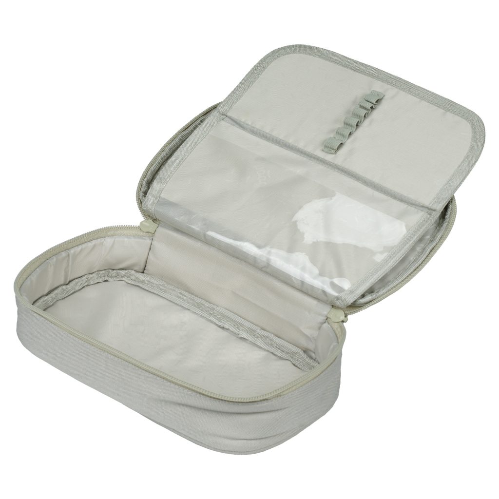 • Kompaktní penál na zip s prostornou hlavní komorou a dvojitou výklopnou chlopní nabízí dostatek prostoru pro psací potřeby i drobnosti.