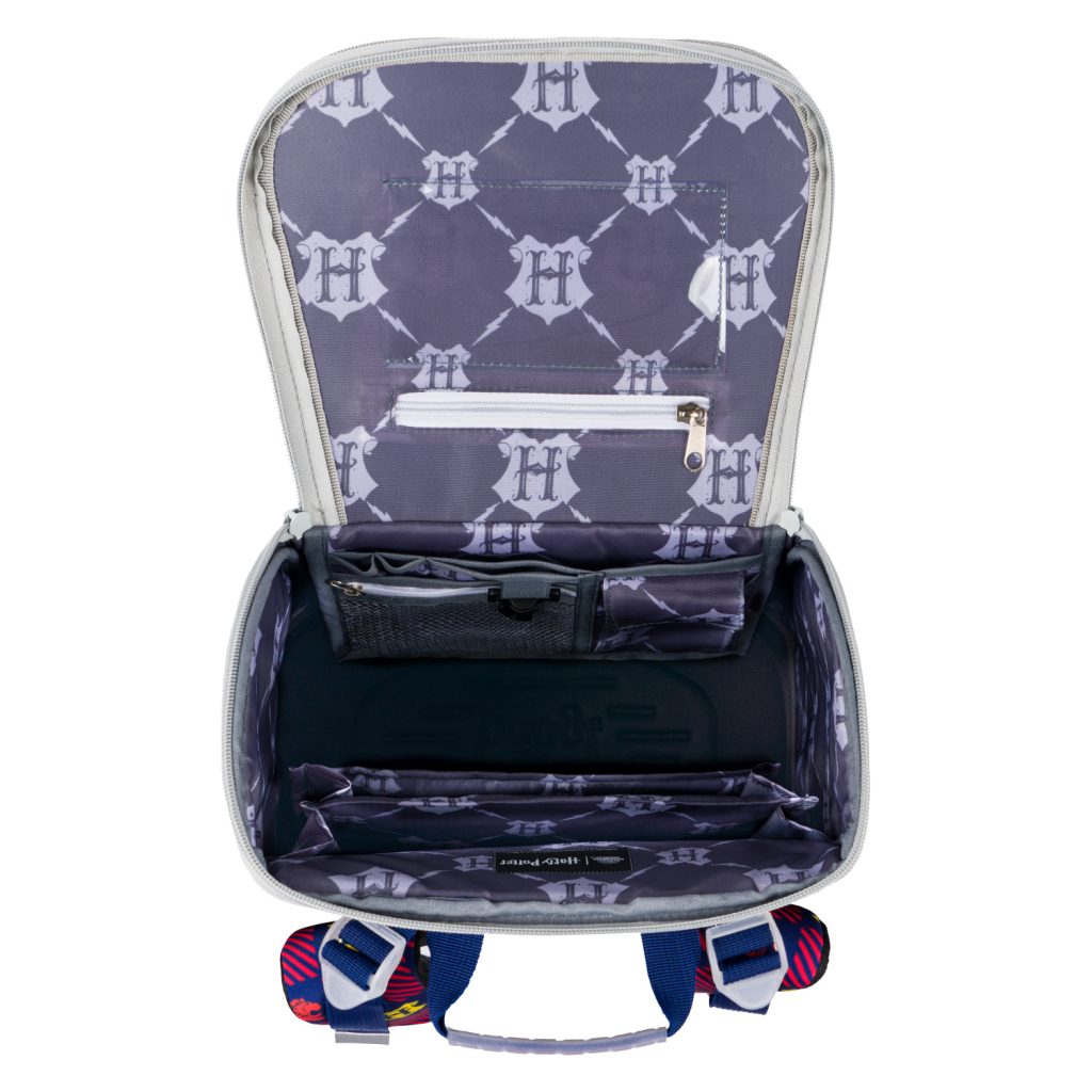 • Uvnitř aktovky je průhledná kapsa s rozvrhem a vnitřní organizér umožňující rovnoměrné rozložení hmotnosti, doplněný gumičkou pro fixaci.