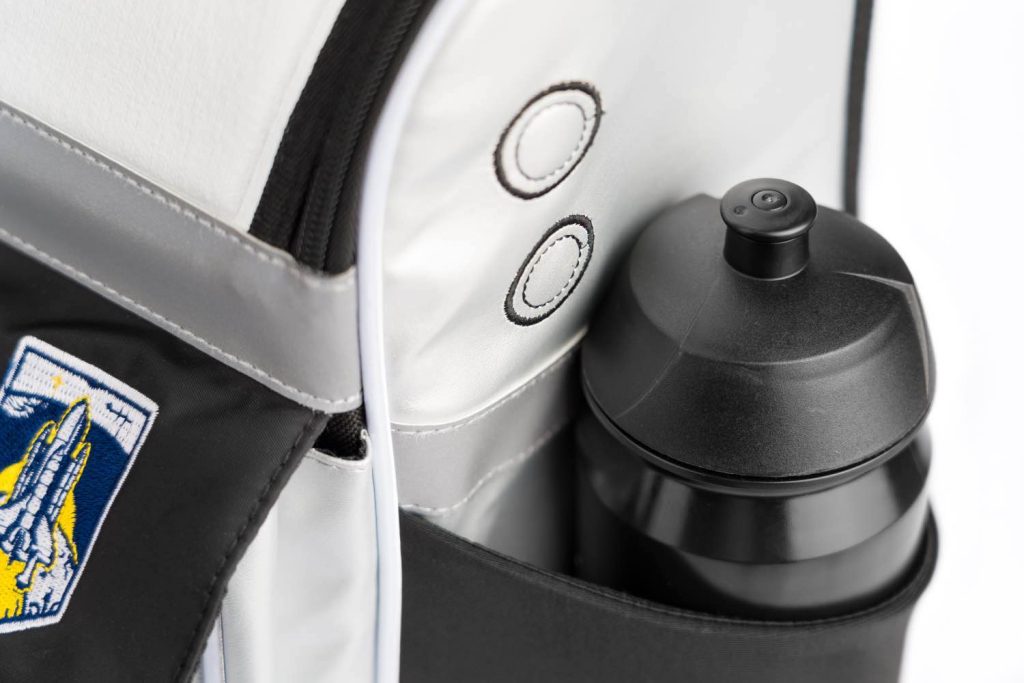• Boční kapsy z elastického materiálu, které jsou vhodné pro jednu z našich láhví na pití.