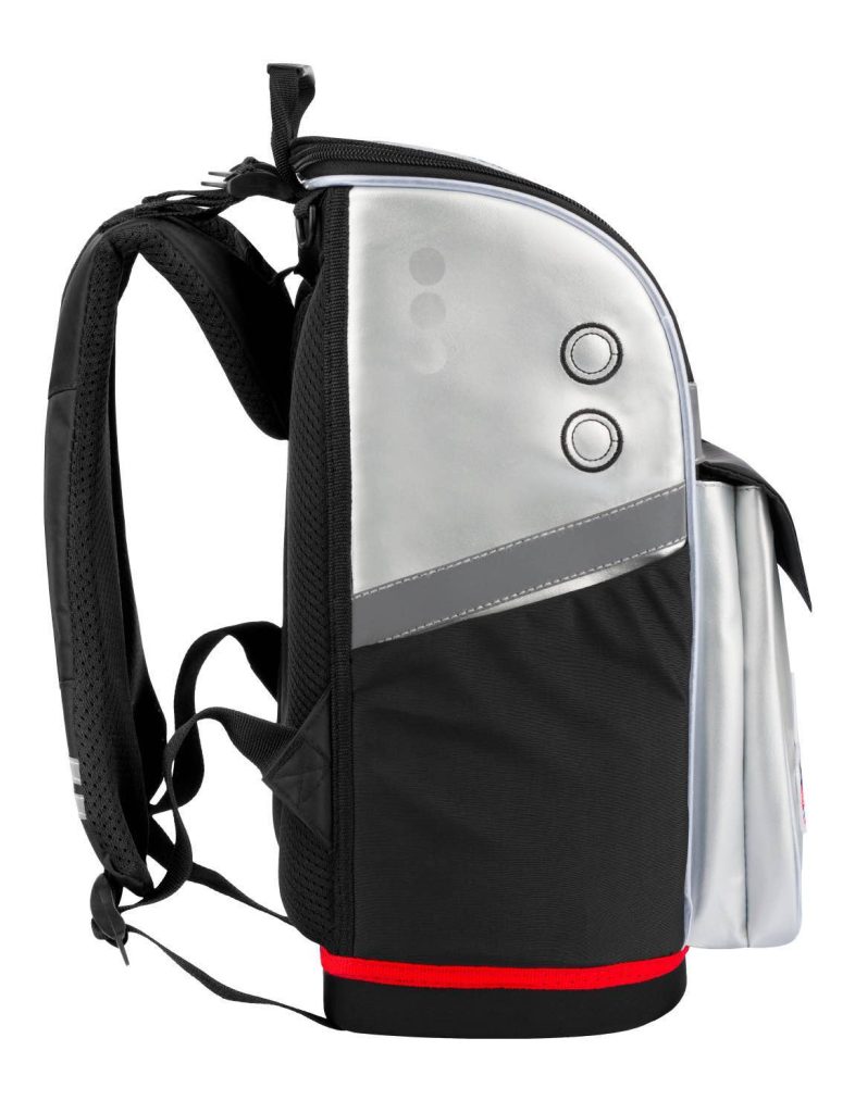 • Uvnitř aktovky je průhledná kapsa s rozvrhem a vnitřní organizér umožňující rovnoměrné rozložení hmotnosti, doplněný gumičkou pro fixaci.