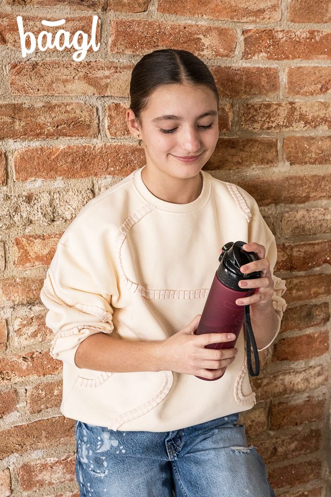 Uzamykatelné víčko nepropustí ani kapku nápoje a zaručuje jednoduché a intuitivní používání. Součástí láhve je i sítko, díky kterému můžete láhev použít i na limonády s ovocem nebo čaj (materiál je vhodný i pro horké nápoje). K láhvi je připevněné také poutko pro pohodlné nošení v ruce.