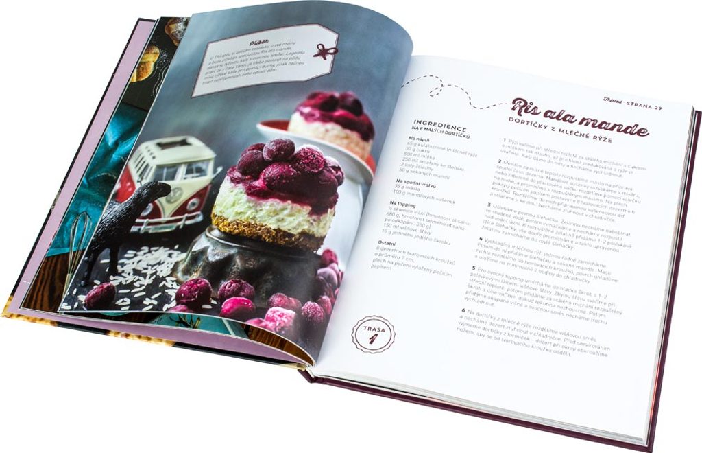 Publikace je rozdělená do 7 cest, které začínají vždy mapou s vyznačením jednotlivých měst. Z Londýna a Paříže přes Lisabon, Kodaň a Řím až do Prahy, Istanbulu a Moskvy – s jednou sladkou odbočkou do New Yorku. Kromě receptů a srozumitelného vysvětlení jednotlivých kroků pečení se dozvíte i zajímavosti o městech a zasvěcené informace z cest. Tato kniha pečení Vám vypráví příběhy!