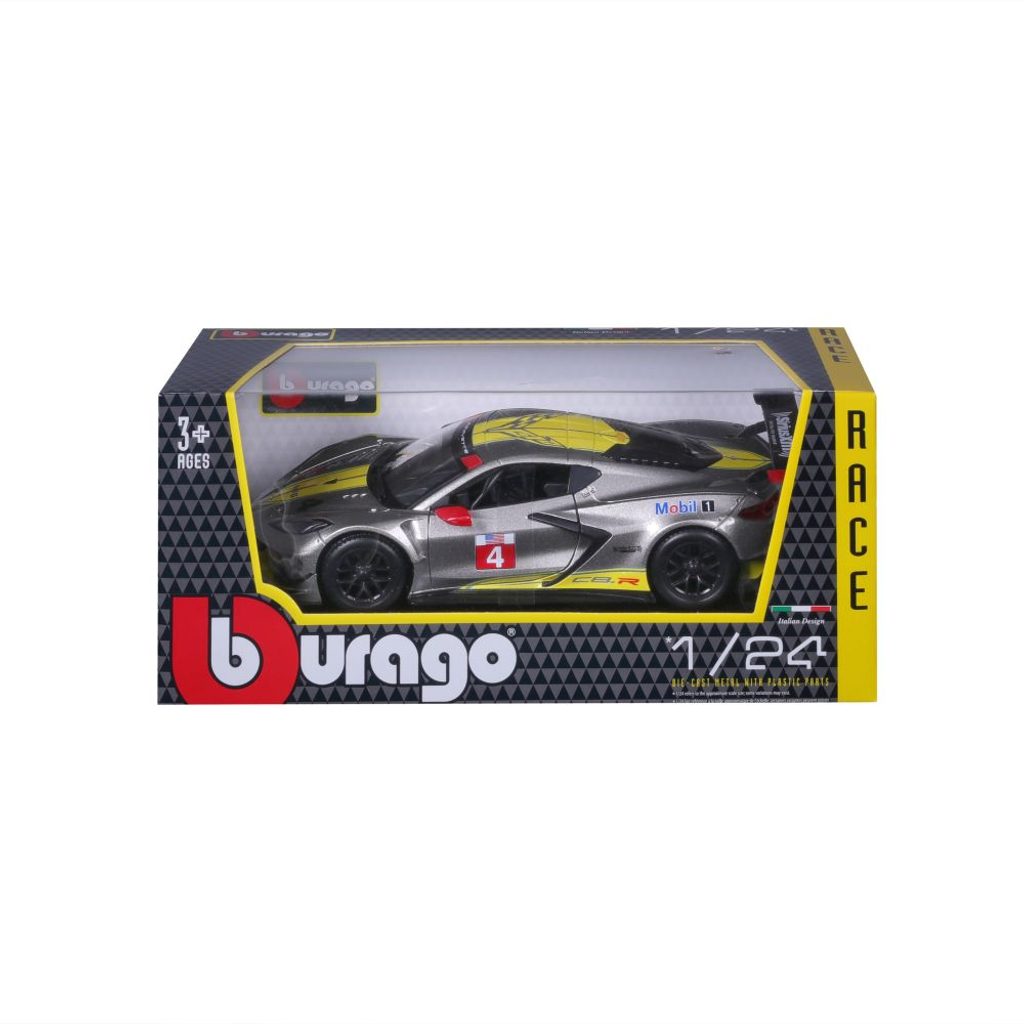 Kovové autíčko Bburago 1:24 Racing - 2020 Chevrolet Corvette - C8R #4 Yellow