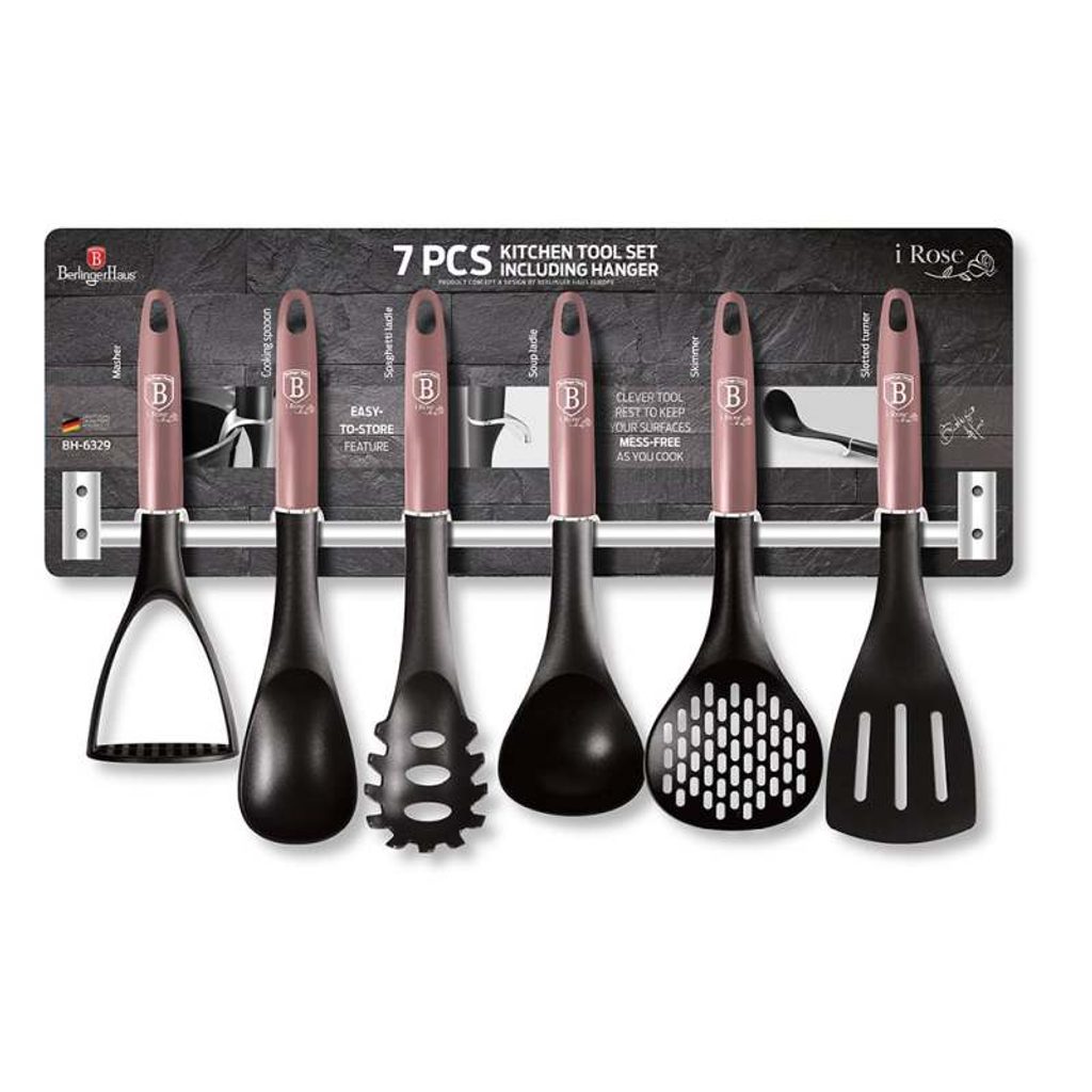 BERLINGERHAUS Kuchyňské náčiní s nástěnným držákem 7 ks I-Rose Edition BH-6329