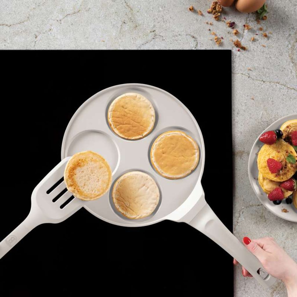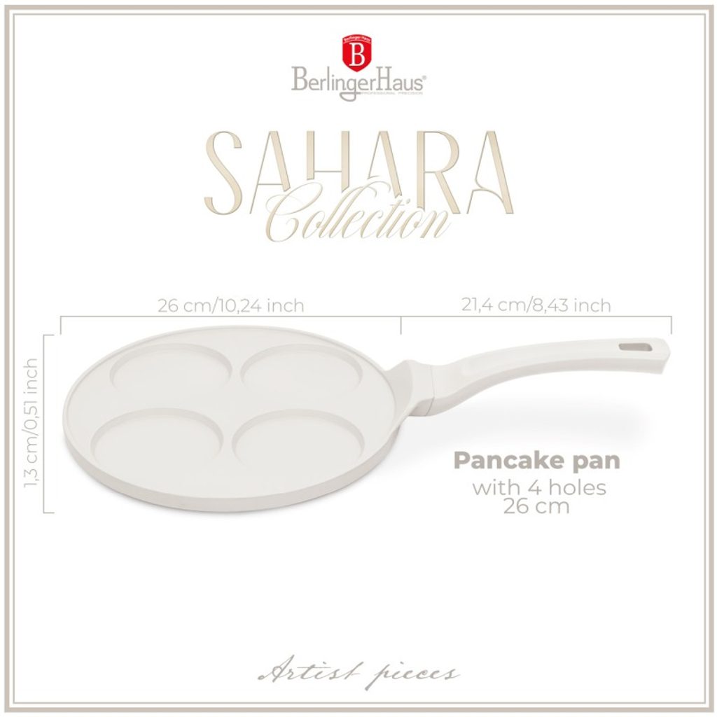 Tento lívanečník o průměru 26 cm je vyroben z kvalitního litého hliníku a navržena pro snadnou a efektivní přípravu dokonalých lívanců. Díky 2vrstvému nepřilnavému povlaku se jídlo nepřipaluje a ergonomická rukojeť Soft-touch zajišťuje pohodlné používání. Pánev je vhodná pro všechny typy varných desek, včetně indukce, a šetří energii. S elegantním designem, možností zavěšení a ekologicky šetrnými materiály je nejen praktická, ale také stylová a šetrná k životnímu prostředí.