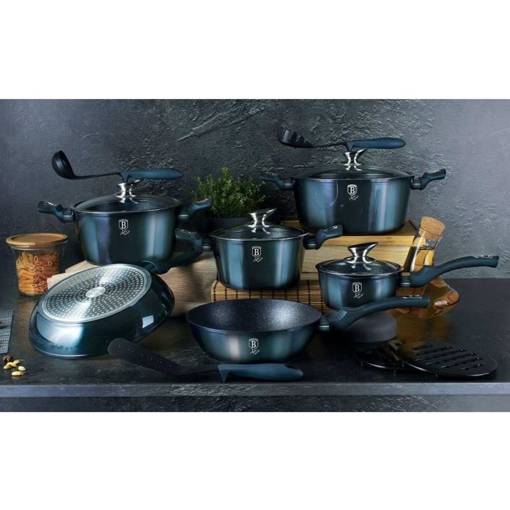 Hledáte vhodnou sadu nádobí do vaší kuchyně? Sadou získáte všechny potřebné nádoby na vaření, ať už budete vařit pro sebe nebo pro více osob. Velkou výhodou je, že můžete objednat najednou více nádobí od ověřeného výrobce BERLINGERHAUS. Sadu nádobí sjednocuje jednotný design, navíc modrá barva celé sady je univerzální a vyjímat se bude v každé kuchyni.