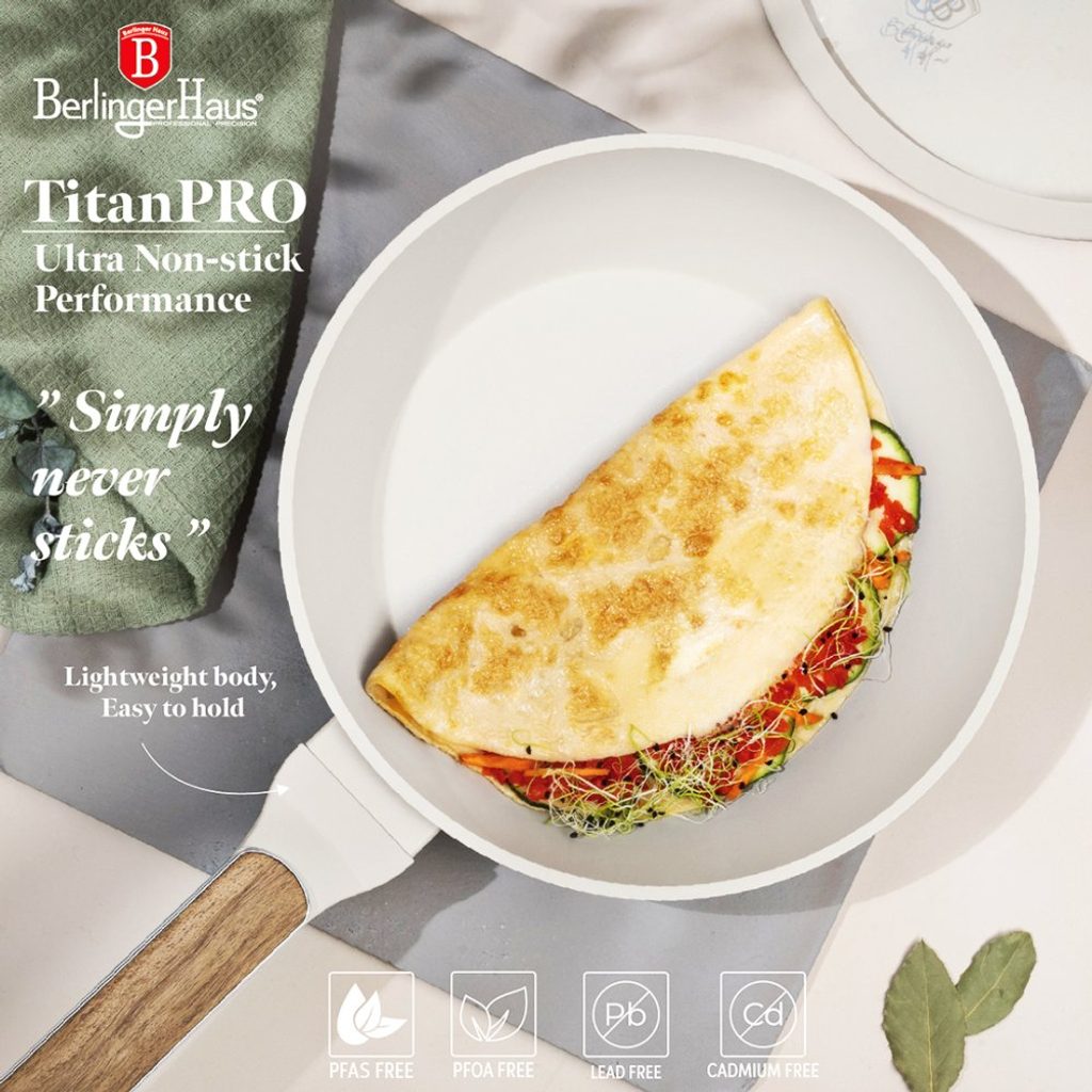 Třívrstvý titanový povrch je navržen tak, aby vydržel každodenní výzvy. Nelepí, nepřipaluje, snadno se čistí a přitom neobsahuje škodliviny – pro zdravější a pohodlnější vaření.