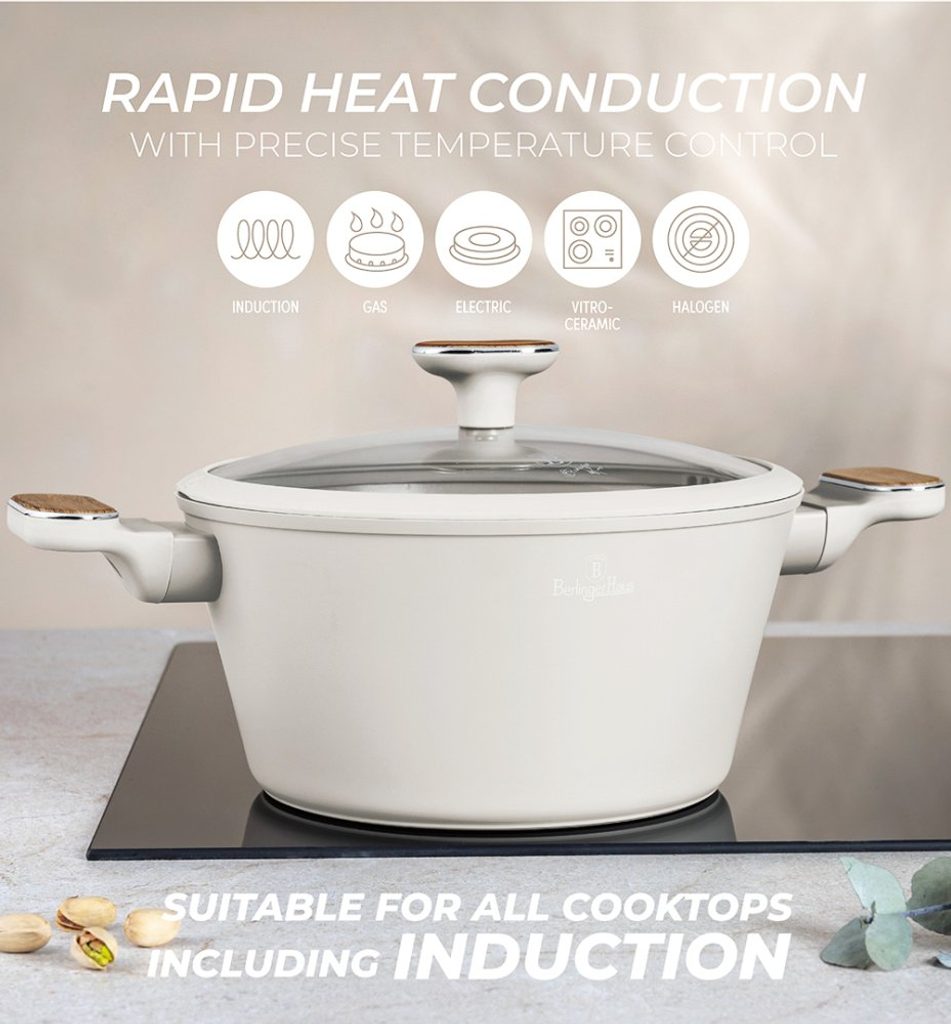 Každý kus je vybaven dnem s rychlým přenosem tepla. Vaření je efektivní, ať už máte indukci, plyn nebo sklokeramiku.