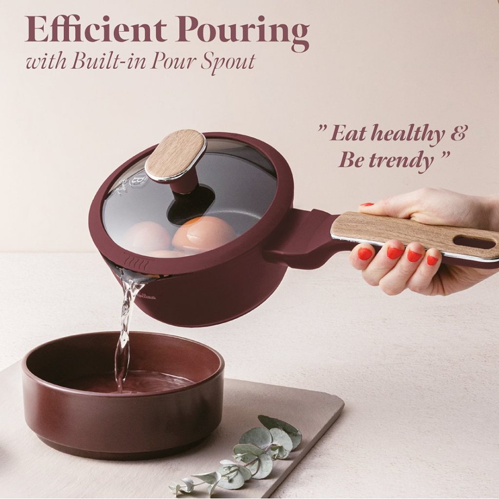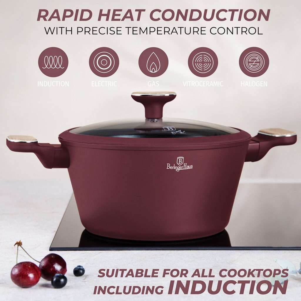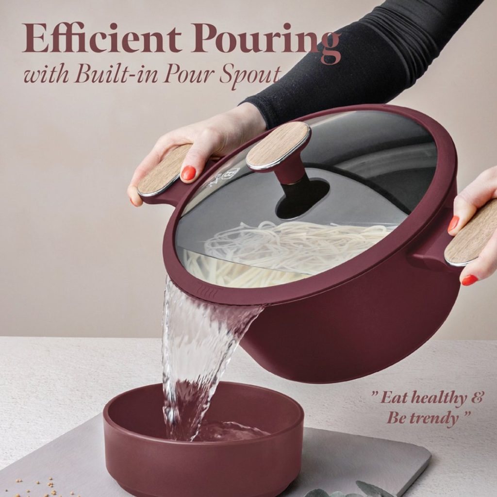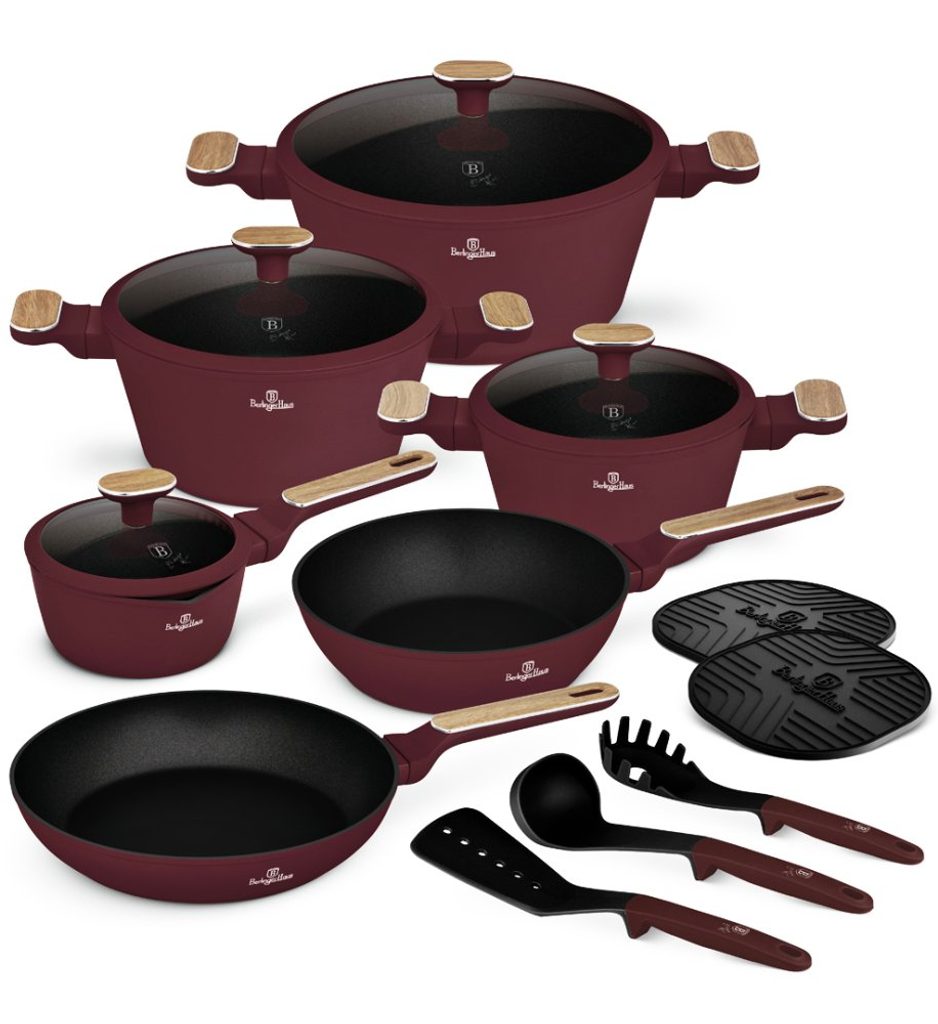 Vstupte do světa profesionálního vaření s touto exkluzivní sadou nádobí, která kombinuje lehkost kovaného hliníku s prémiovým nepřilnavým povrchem TitanPro. Každý kus je navržen tak, aby vám usnadnil přípravu pokrmů a zároveň přinesl do vaší kuchyně styl a funkčnost v minimalistickém designu v matné bordó a dřevěných detailech.