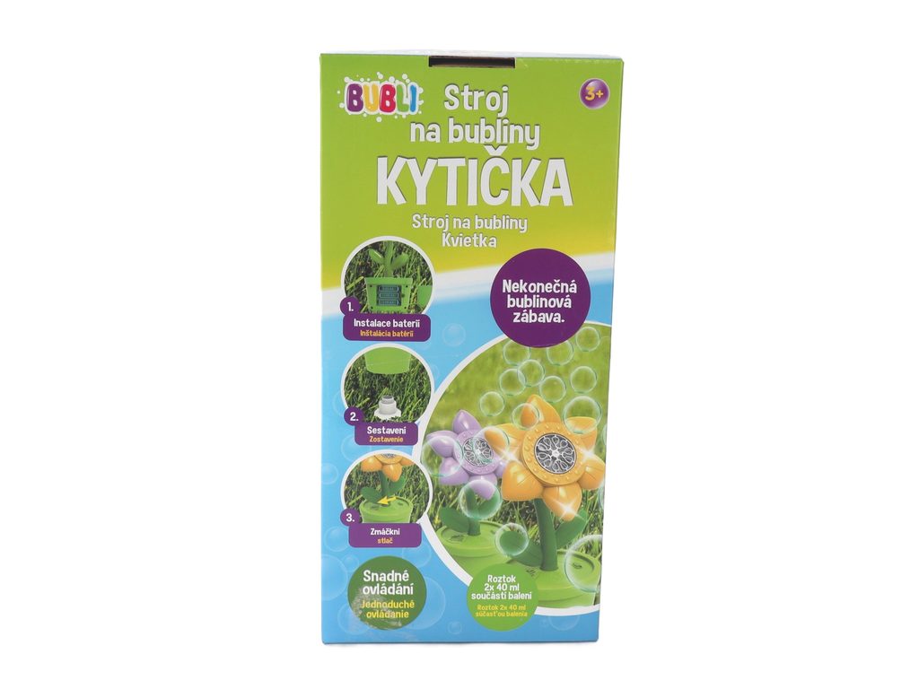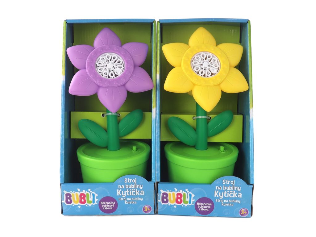Vhodné od 3 let. Stroj na bubliny kytička fialová