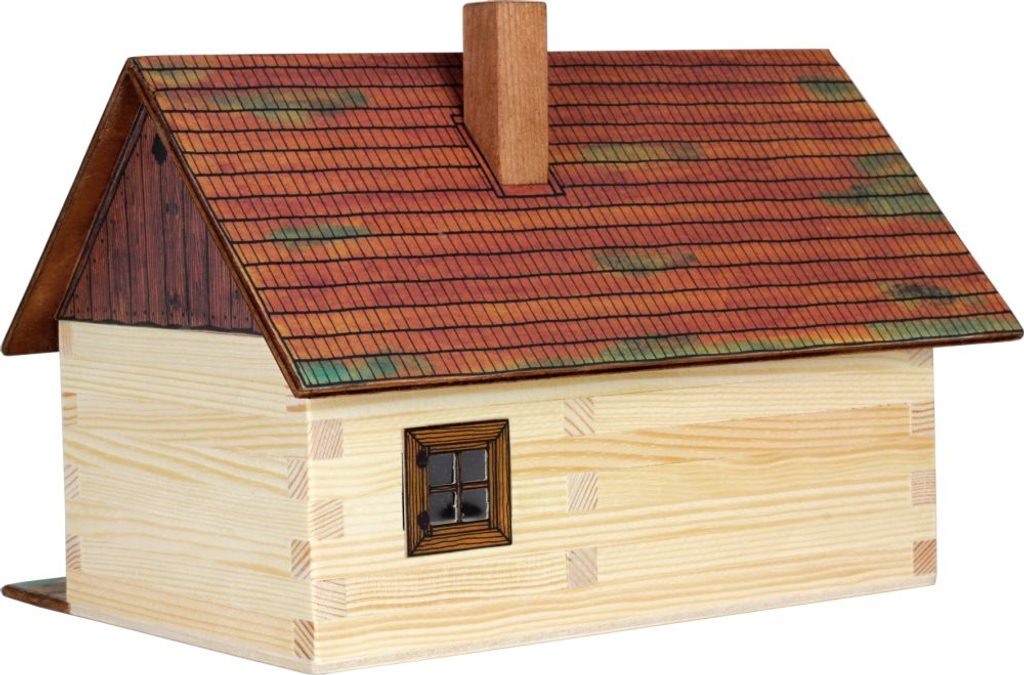 Dřevěná slepovací stavebnice Walachia - Roubená chalupa. Slepovací stavebnice Walachia jsou dřevěné modely domečků a staveb z Valašského kraje v měřítku 1:32. Základem jsou dřevěné hranolky 9x9 mm a k tomu jsou v sadě vždy všechny papírové doplňky - okna, dveře, střešní části atd. Pro lepení se používá lepidlo Herkules, není však součástí stavebnice. Přiložený je montážní návod a malé kapitoly z historie lidové architektury.Níže je označení obtížnosti číslem 1 - 5, přičemž 1 je nejlehčí. Rozměry: 22 x 15 x 15 cm Počet dílů: 100 Obtížnost: 2