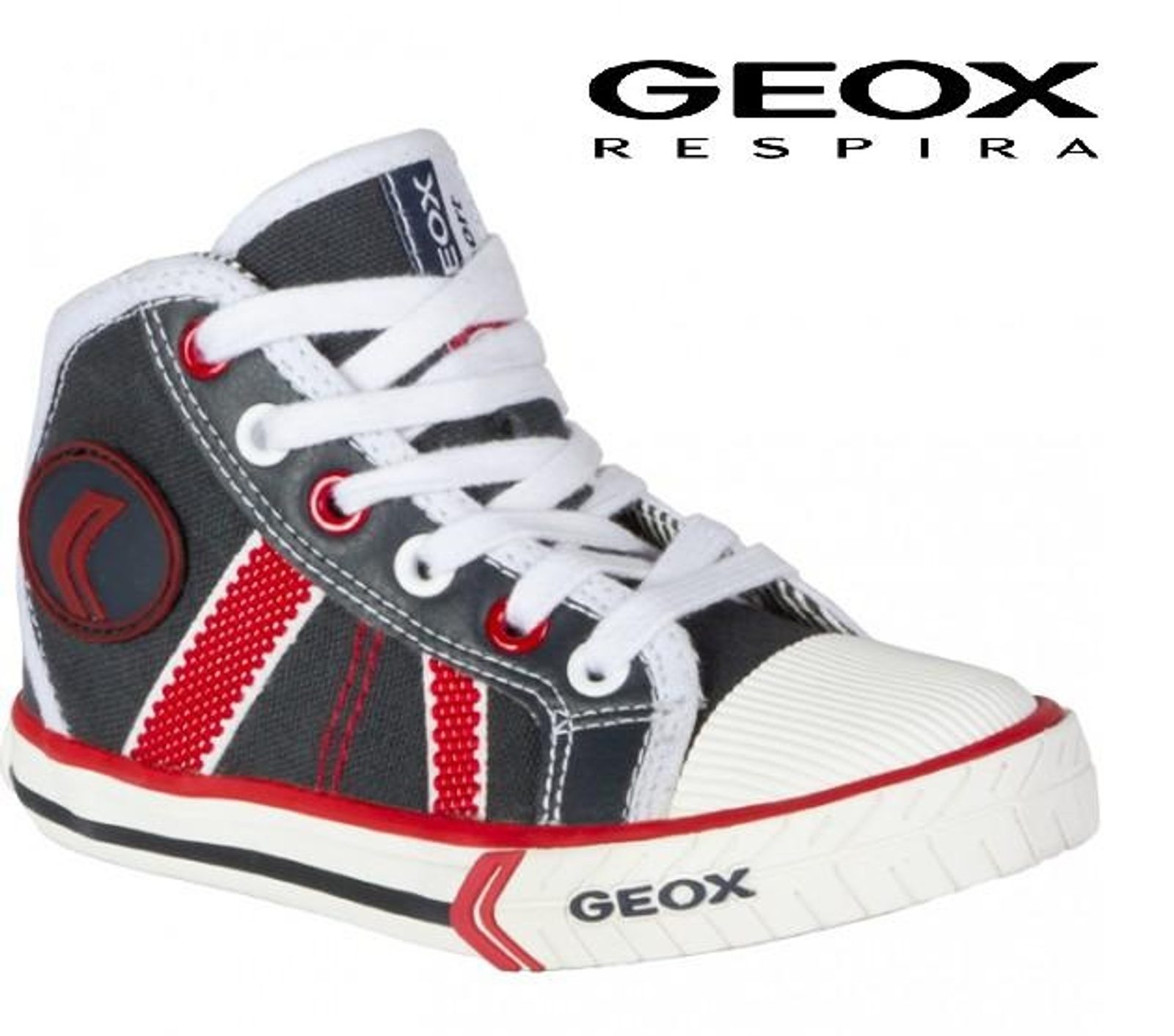 Chlapecká kotníčková teniska Geox s patentem "dýchající podešve" - perforovaná podešev, která propouští páru ven, ale vlhko dovnitř nepustí. Na zip nebo na šněrování. Chráněná špička proti okopu.