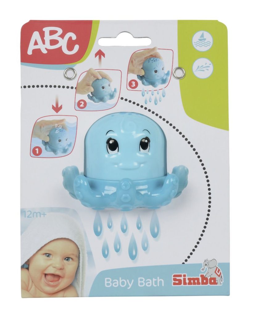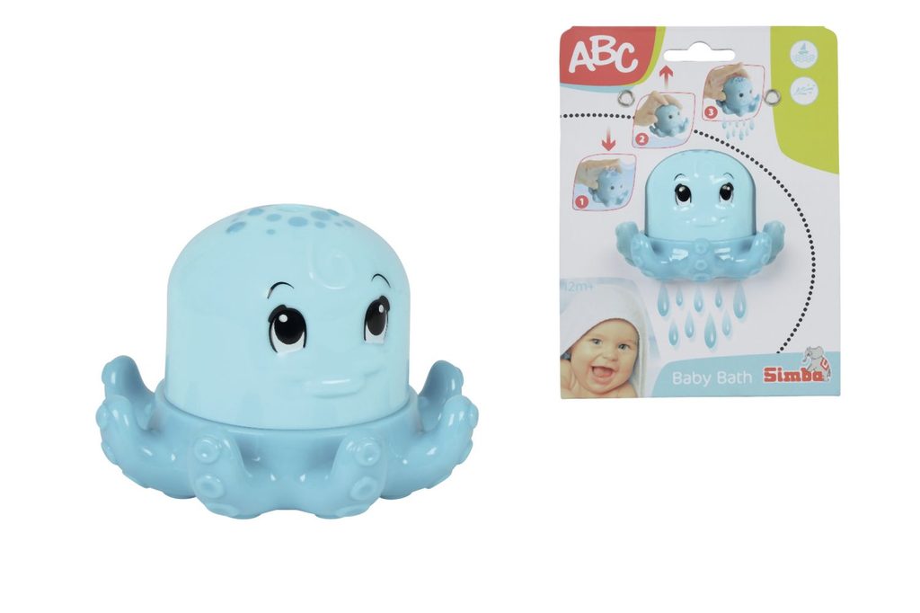 Chobotnička do vany pro zábavnější koupání. Při ponoření do vody se naplní vodou, přidržením otvorů na hlavičce a vyzvednutím chobotničky z vody, voda zůstane uvnitř. Následným uvolněním voda vyteče spodem jako "sprška". Velikost 10 cm.