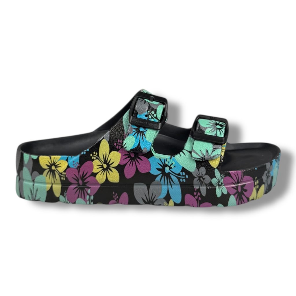 Dámské pantofle na platformě Best Feet - černé s potiskem