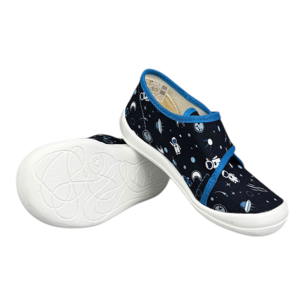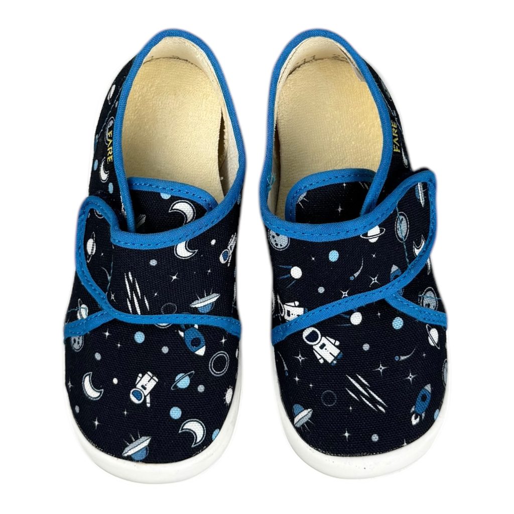 Přezůvková, nízká, textilní, lemovaná obuv, zapínání na suchý zip.