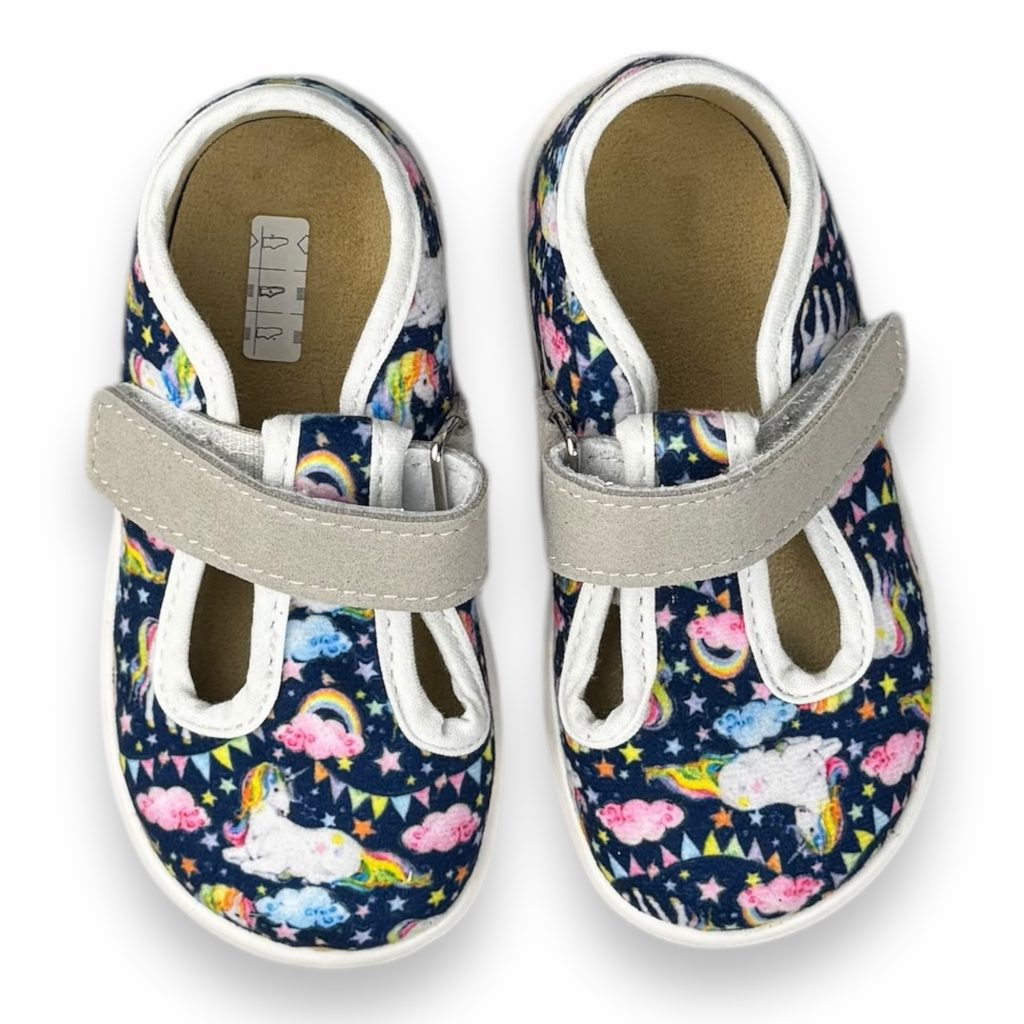 Dětská domácí obuv pro ty nejmenší. Botičky jsou vhodné buď jako domácí obuv nebo jako letní obuv. Obuv je vyrobena z textilního materiálu na velmi flexibilní podešvi. Takže jsou vhodné i na první krůčky Vašeho dítěte. Navíc je stélka také vyjímatelná. Zapínání je na jeden suchý zip.