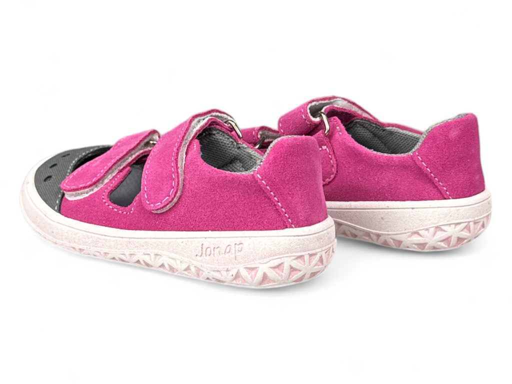 Aby se vašim dětem dobře běhalo po hřišti, v přírodě i městském chodníku, pro horké léto jim pořiďte barefoot boty Jonap Fela. Kvalitní velurová kůže s textilní podšívkou umožní chodidlu dobře dýchat. Atraktivní střih s průstřihy na patě a sandálkovým řešením v oblasti nártu bude ideální i do parnější dny. Pro pohodlí prstů i širšího chodidla bota poskytuje dostatek prostoru a vkládací stélka z paměťové pěny se postará o pocit jako v bavlnce.