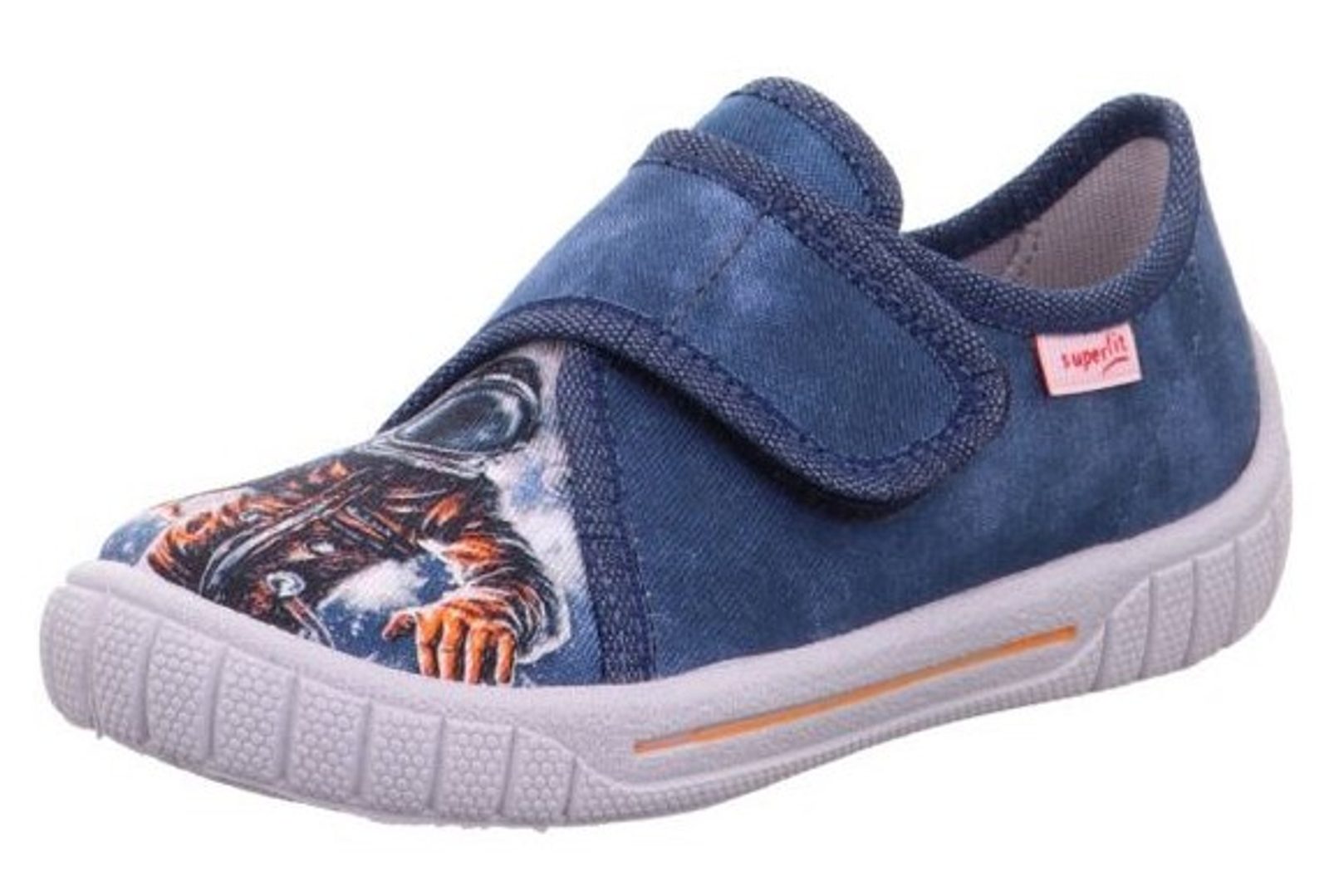 Přezůvková, nízká, textilní, lemovaná obuv Superfit. Dětské boty na doma, do školky, do školy. Obuv je v prstové části prostorově vytvarována, je vybavena pevným opatkem. Podržážka je děrovaná pro zajištění cirkulace vzduchu, což přispívá k lepšímu klima v obuvi. Nohy se tak nepotí.