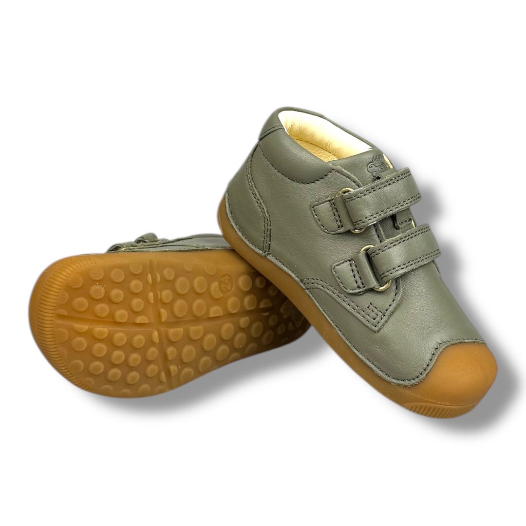 Kožené kotníkové barefoot boty od značky Bundgaard jsou měkké, pohodlné a odolné díky přetažené gumě přes okraj boty. Ideální i pro začínající chodce.