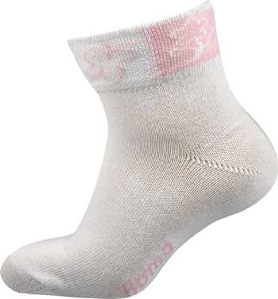 Dětské krátké ponožky s efektním lemem. Velikost 17-19 odpovídá velikosti 25-29 Složení : 80% bavlna 15% polypropylen 5% elastan