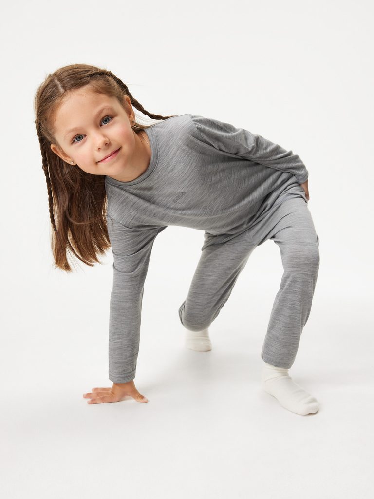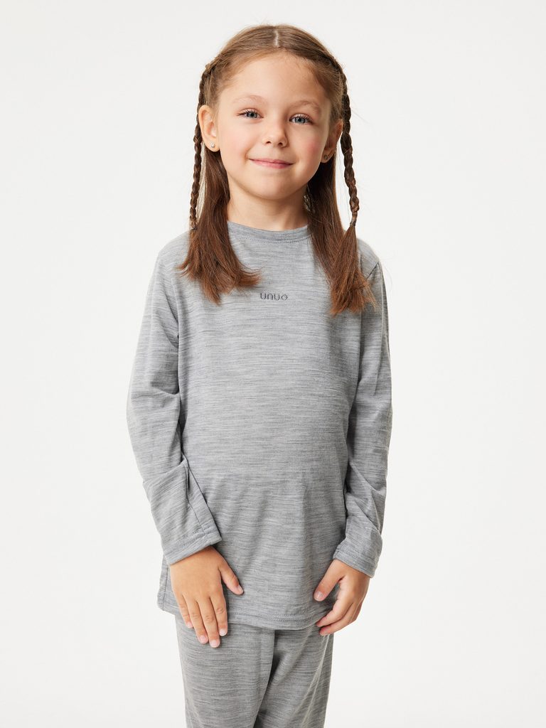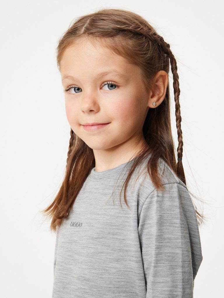 Dětské merino triko s dlouhým rukávem, Šedá
