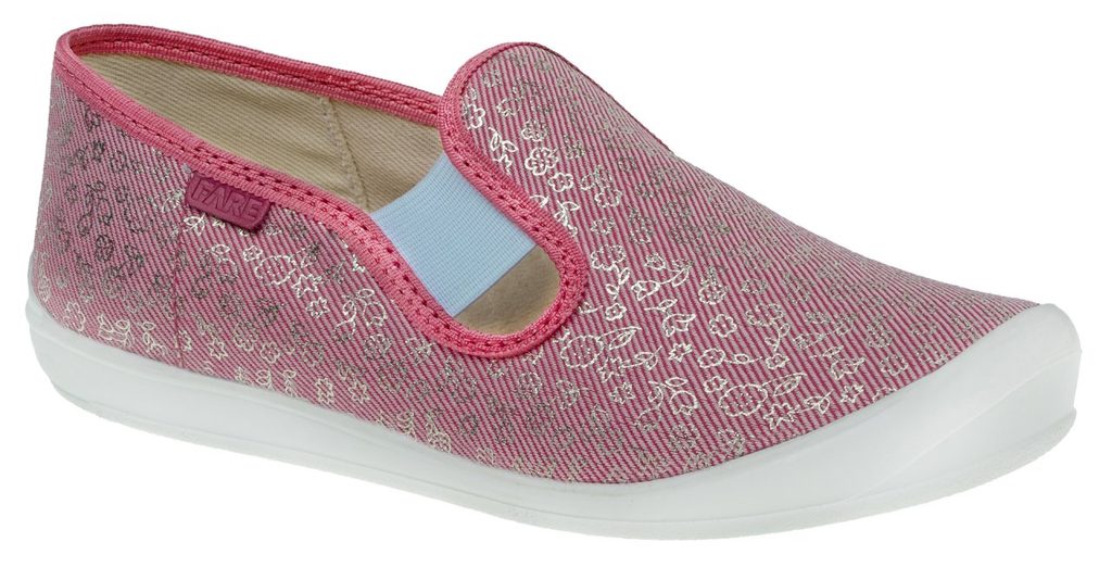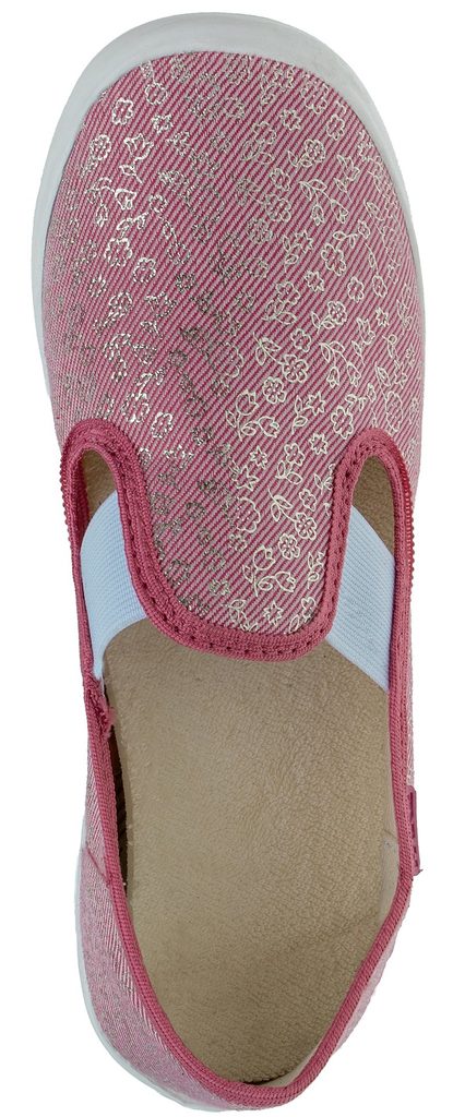 Přezůvková, nízká, textilní, lemovaná obuv, pruženkové uzavírání.