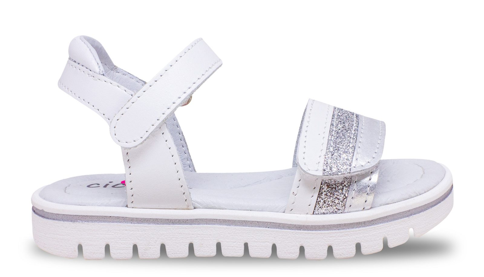Slušivé dívčí sandálky v bílé barvě. Komfortní, ergonomicky tvarovaná kožená stélka.