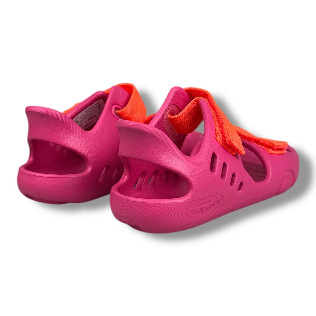Se sandály značky Superfit mohou vodní hrdinové překračovat řeky bez starostí. Boty mají ohebnou podešev, která je měkká a zároveň pružná. Díky textilním páskům příjemně měkce obepíná chodidlo. Zapínání na dva suché zipy.