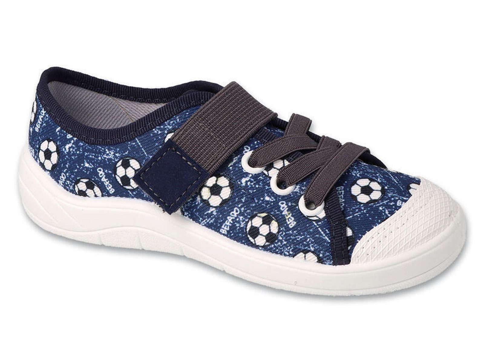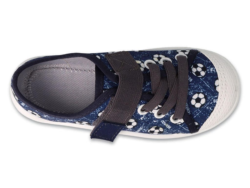Dětské tenisky Befado se zapínáním na suchý zip. Vyrobeno z vysoce kvalitních přírodních a prodyšných látek. Vyztužená zadní část boty stabilizuje patu.