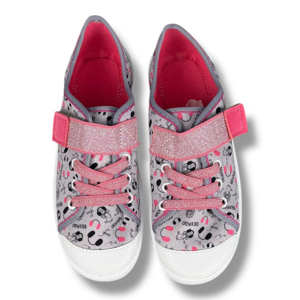 Dětské tenisky Befado se zapínáním na suchý zip. Vyrobeno z vysoce kvalitních přírodních a prodyšných látek. Vyztužená zadní část boty stabilizuje patu.