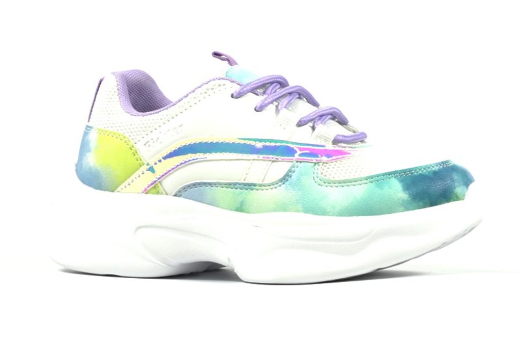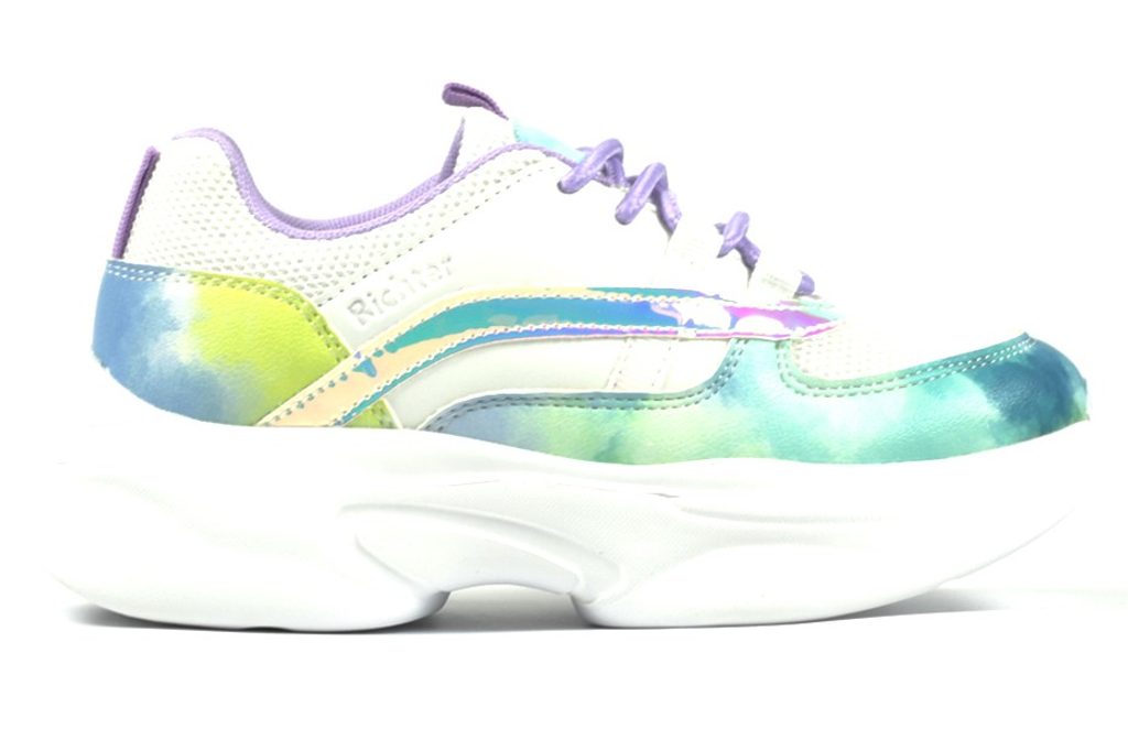 Dívčí lehké barevné tenisky na platformě s modrými šňůrky.