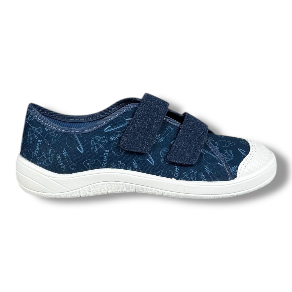 Dětské tenisky Befado se zapínáním na 2 suché zipy. Vyrobeno z vysoce kvalitních přírodních a prodyšných látek. Vyztužená zadní část boty stabilizuje patu.