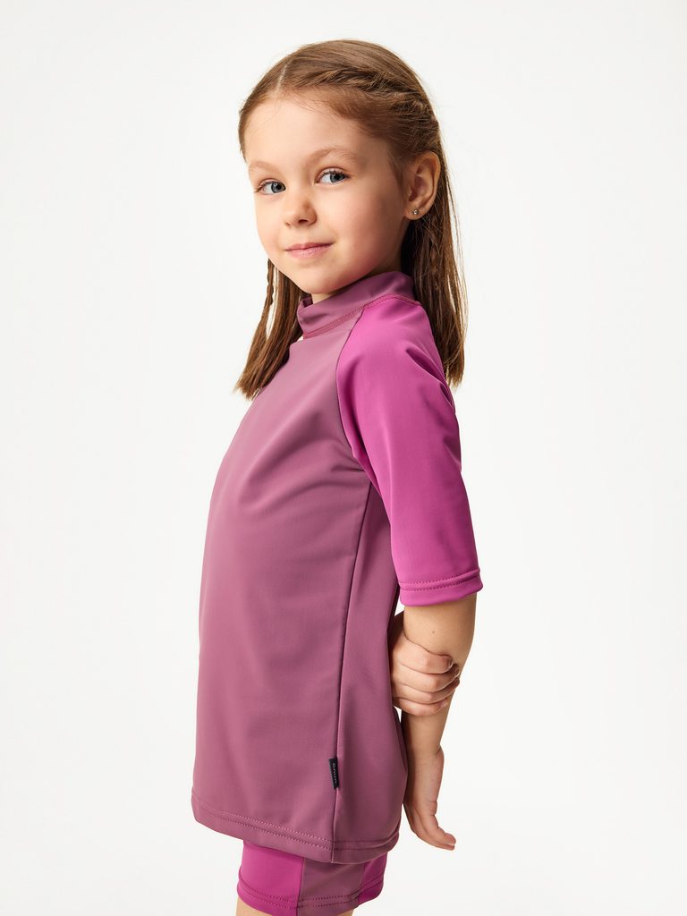 Kolekci vyrábíme z vysoce kvalitní italské plavkoviny s UV ochranou 50+. Recyklovaný polyamid s certifikací OEKO-TEX® zaručuje, že oblečení je šetrné k životnímu prostředí a zároveň bezpečné pro dětskou pokožku. Navíc je tento materiál rychleschnoucí, velmi příjemný na dotyk a zajišťuje maximální komfort během nošení. Díky speciální technologii při výrobě materiálu je UV ochrana trvalá a nevymývá se tak po několika pracích cyklech.