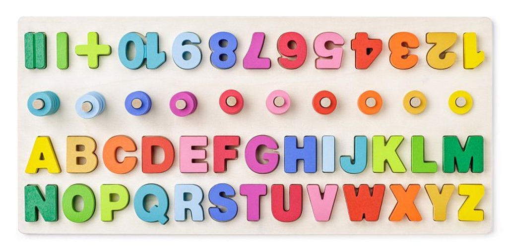 Didaktická destička s počítáním, písmeny a číslicemi