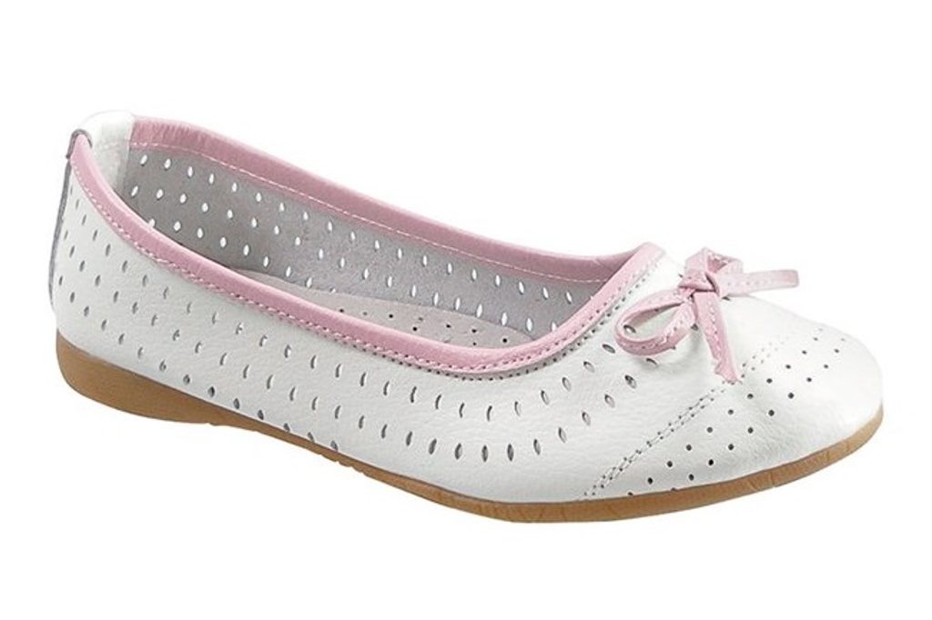 Hezké dívčí baleríny s růžovým lemováním a mašličkou. Dírkované provedení pro zajišťuje výbornou prodyšnot i v letních měsících.