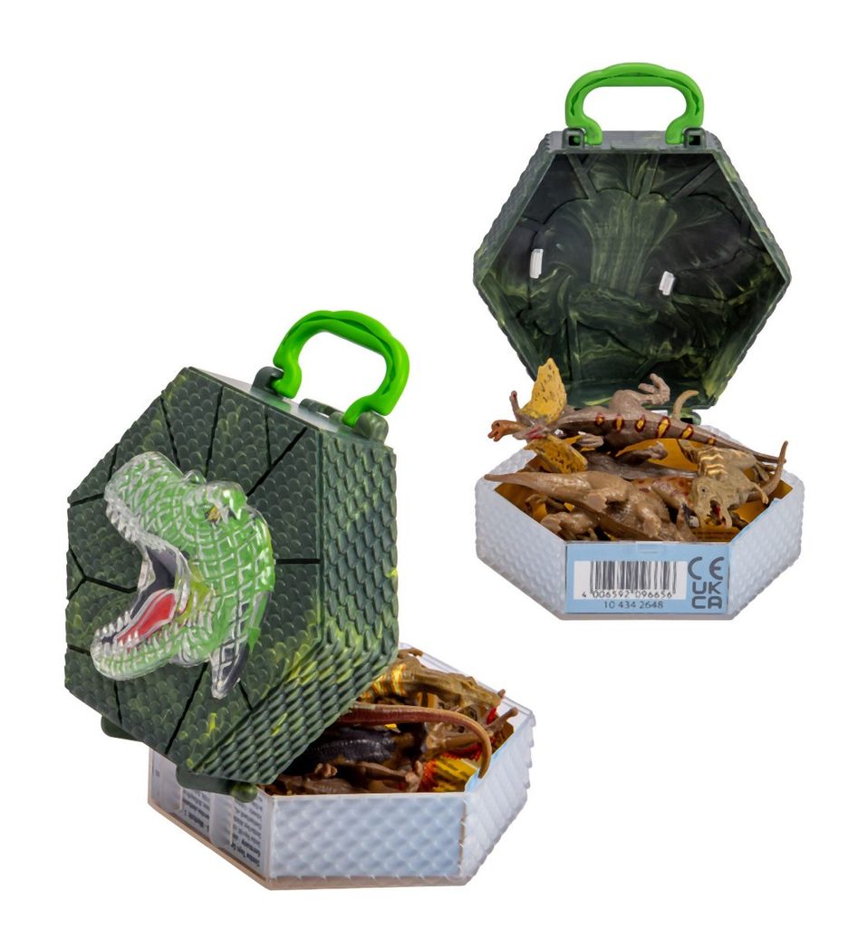 6 figurek dinosaurů o délce 8-9 cm v jedné krabičče (boxu) s motivem T-Rexe a uchem k pohodlnému nošení.