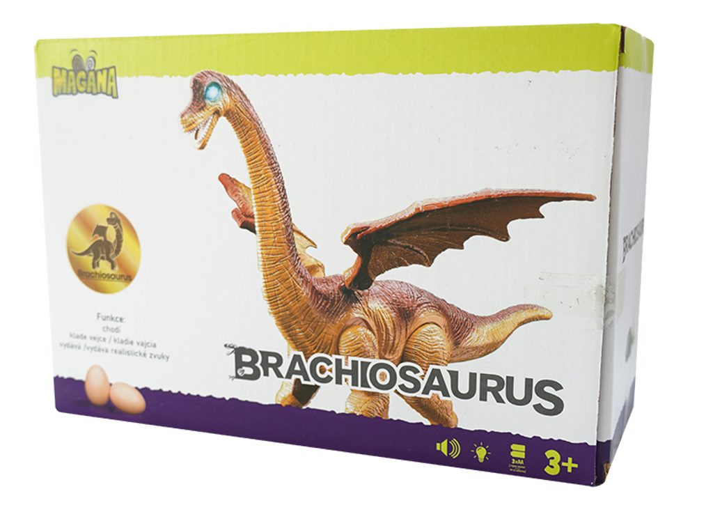 Dinosaurus chodí, vydává zvuk, svítí a snáší vejce. Velikost 45 cm.