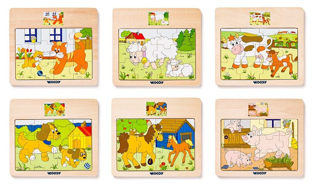 Classical interlock puzzle situated in a wooden frame. The puzzle is designed so that even small children have no problems assembling it. You will not find e.g. identical parts with grass or heaven, difficult to be identified by small children. A part of the whole is represented on each piece or at least a leave or a little snail for the child to find it easily.