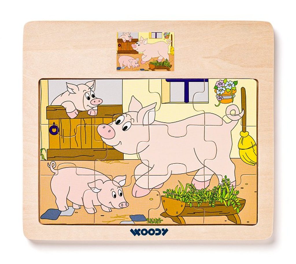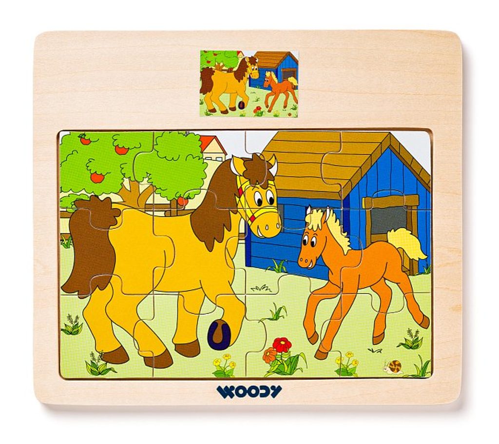 Klasické zámkové puzzle umístěné ve dřevěném rámu. Puzzle je navrženo tak, aby se snadno skládalo i malým dětem. Nenaleznete zde např.stejné dílky s plochou trávy či nebe, které jsou pro malé děti špatně identifikovatelné. Na každém dílku je zobrazena část celku nebo alespoň lísteček či šneček tak, aby se dítě snadno orientovalo.