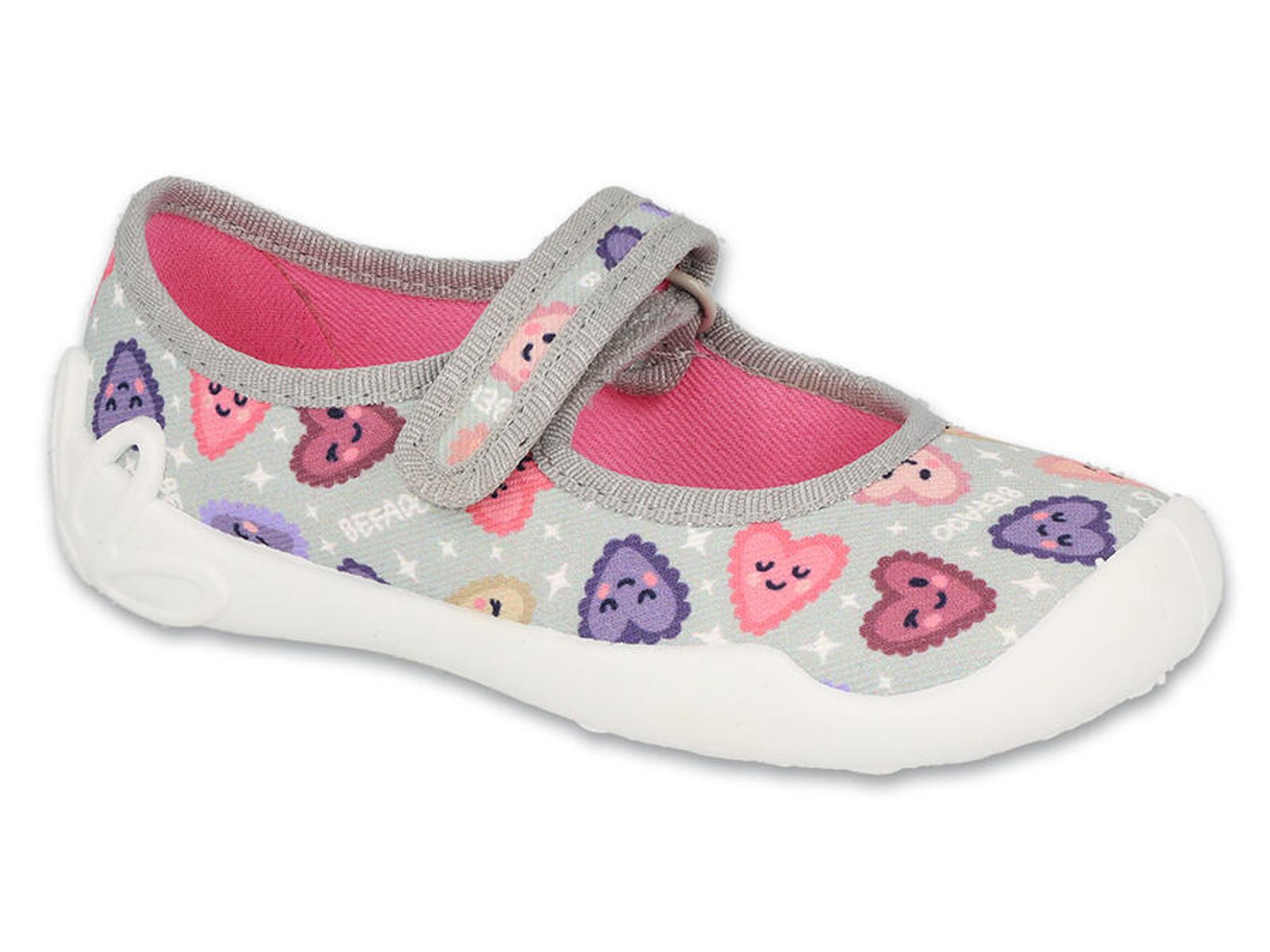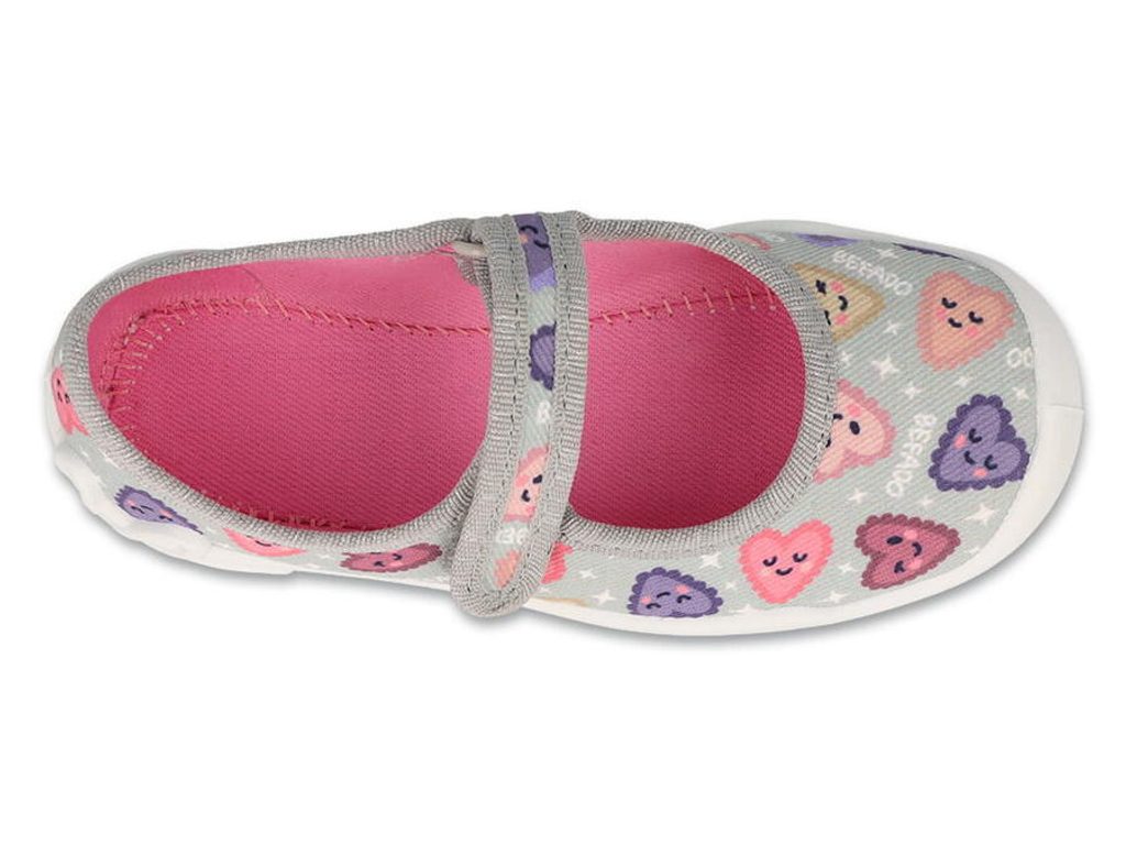 Dívčí balerínky, domácí obuv Befado 114X516 - šedé, srdíčka
