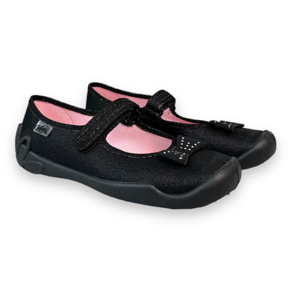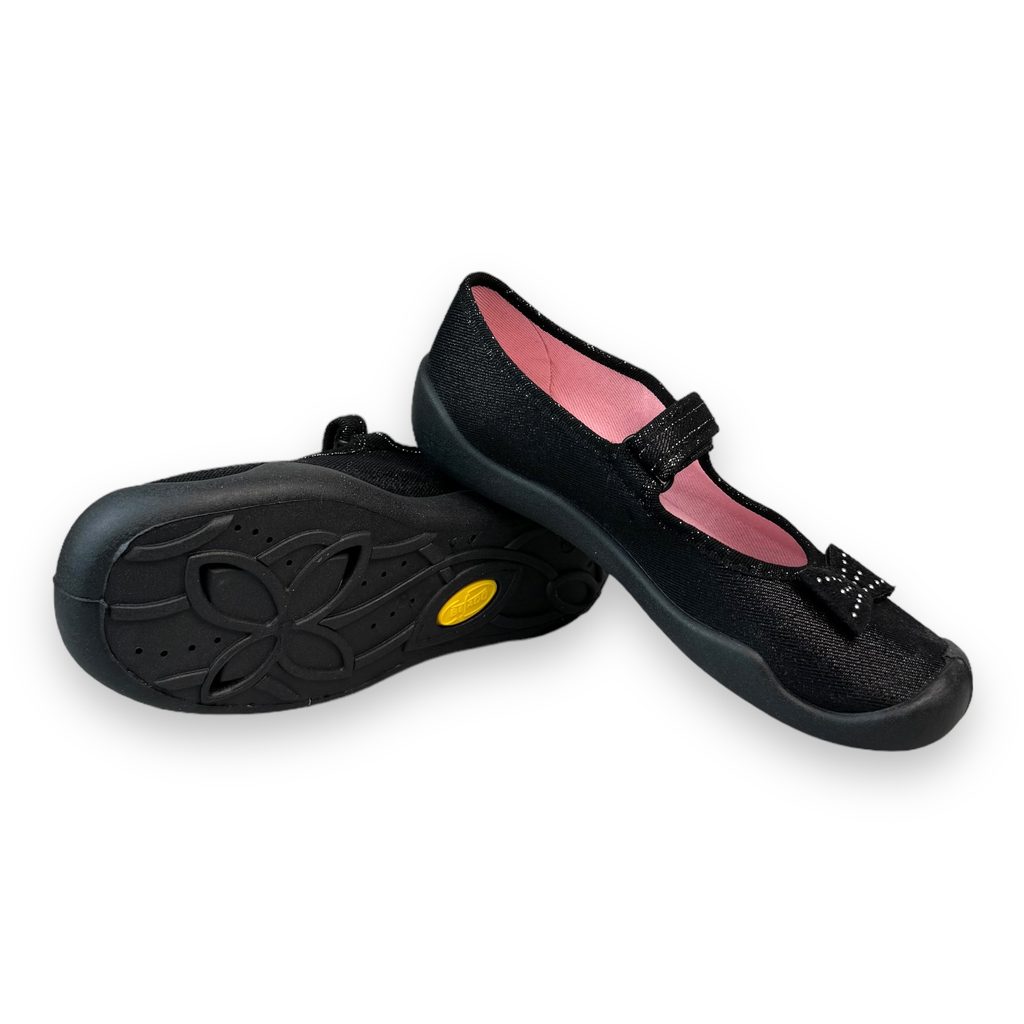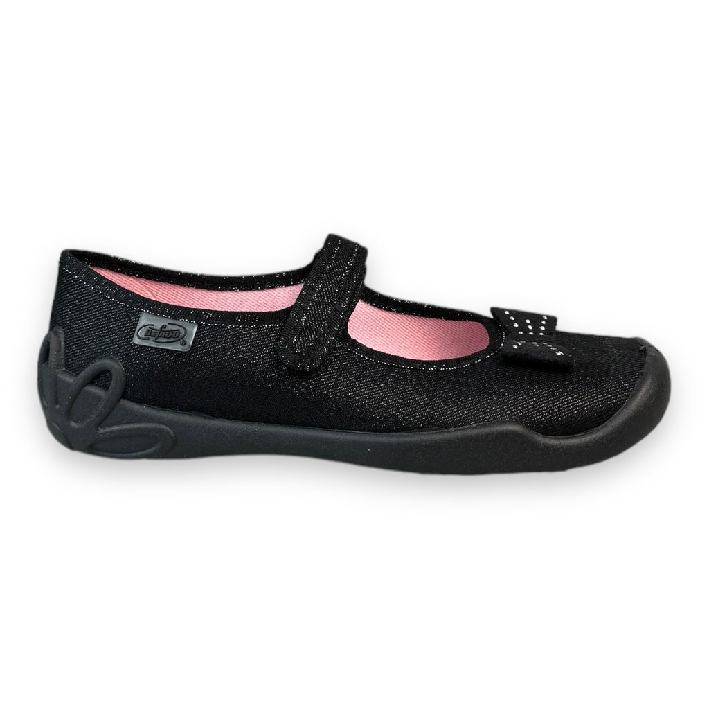 Dívčí balerínky, domácí obuv Befado - černé, mašlička