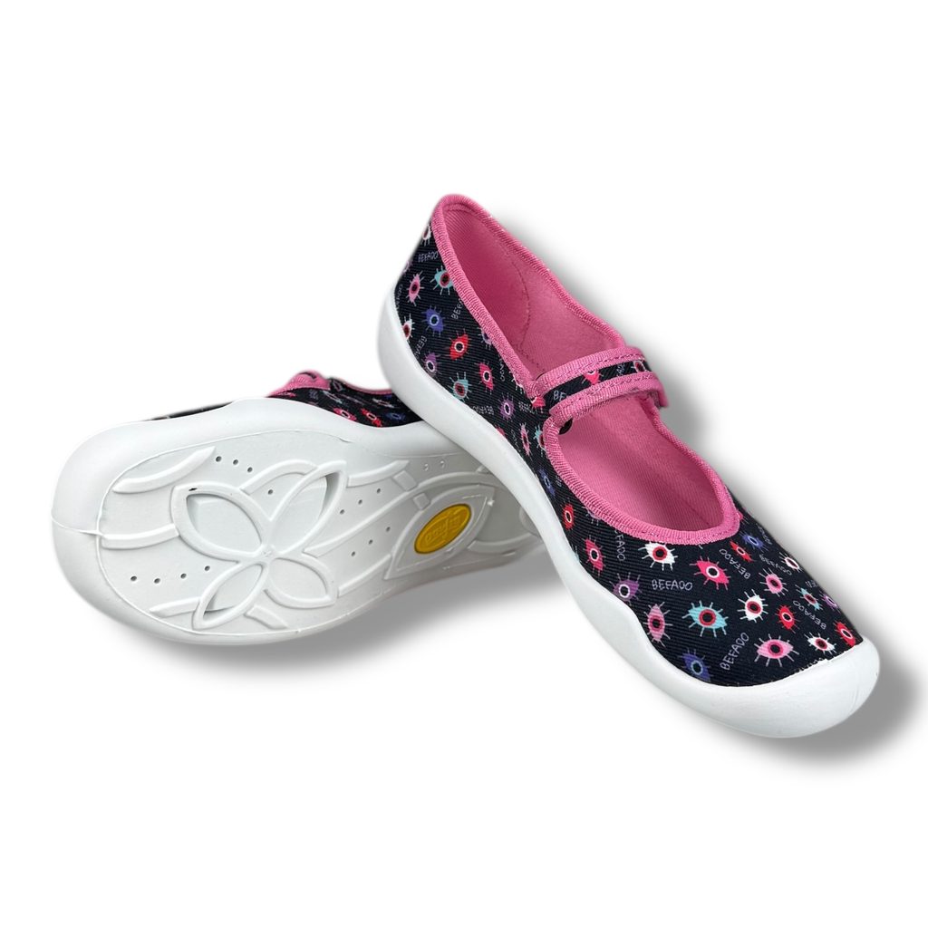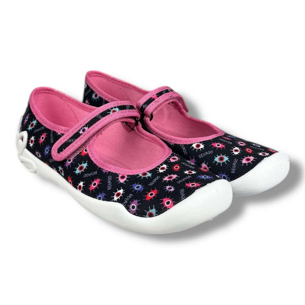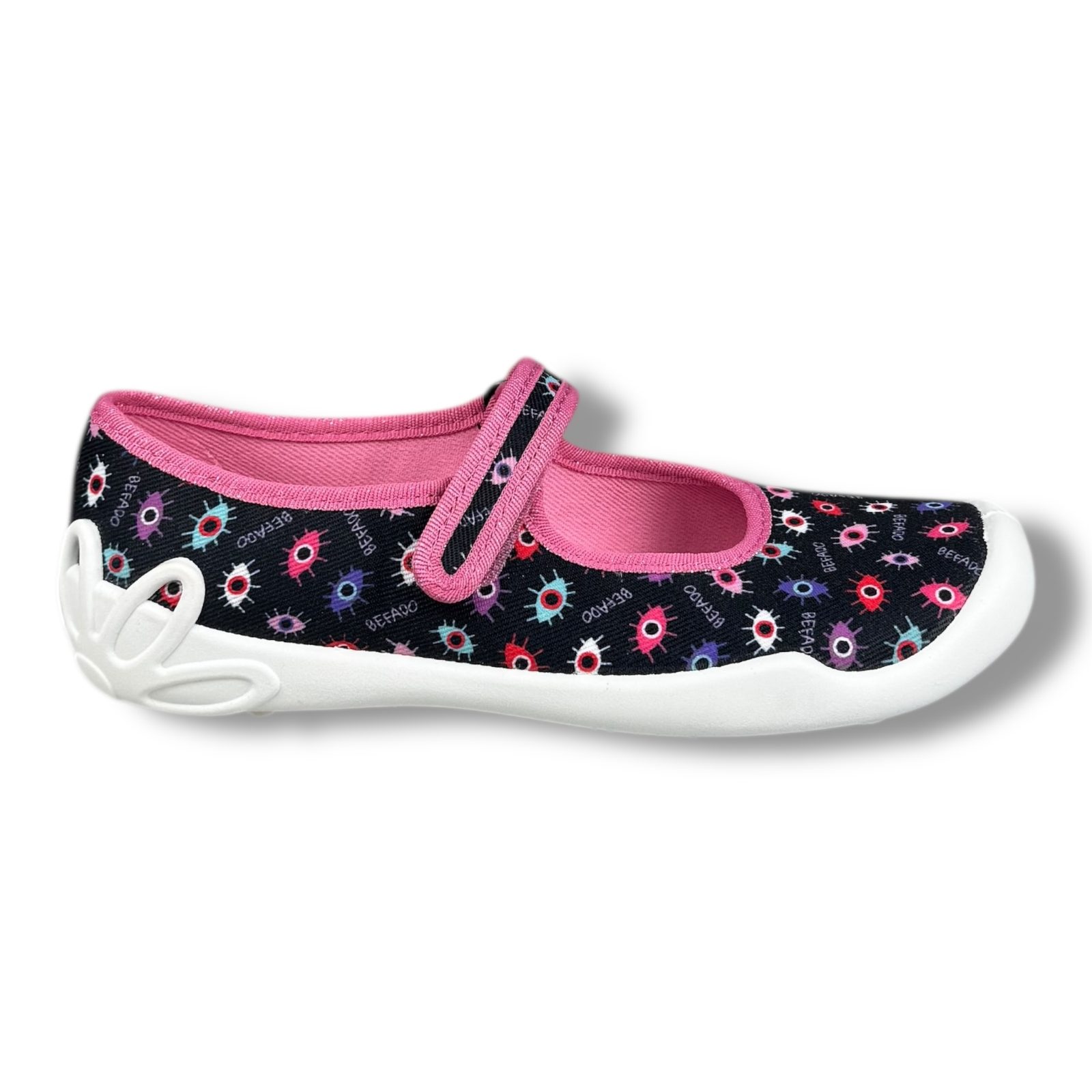 Dívčí balerínky, domácí obuv Befado - černé, oči